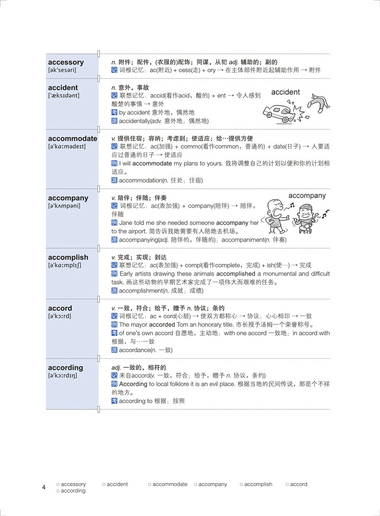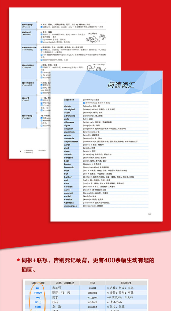 本书沿袭红宝书一直以来采用的词根+联想的记忆方法,考生不必单纯地死记硬背,可以在理解词根和联想记忆方法的同时深刻地记住单词的含义,提升单词记忆的效率和趣味性。同时本书添加了400余幅生动有趣的插画,在考生记忆单词疲惫之余增加了一些乐趣。