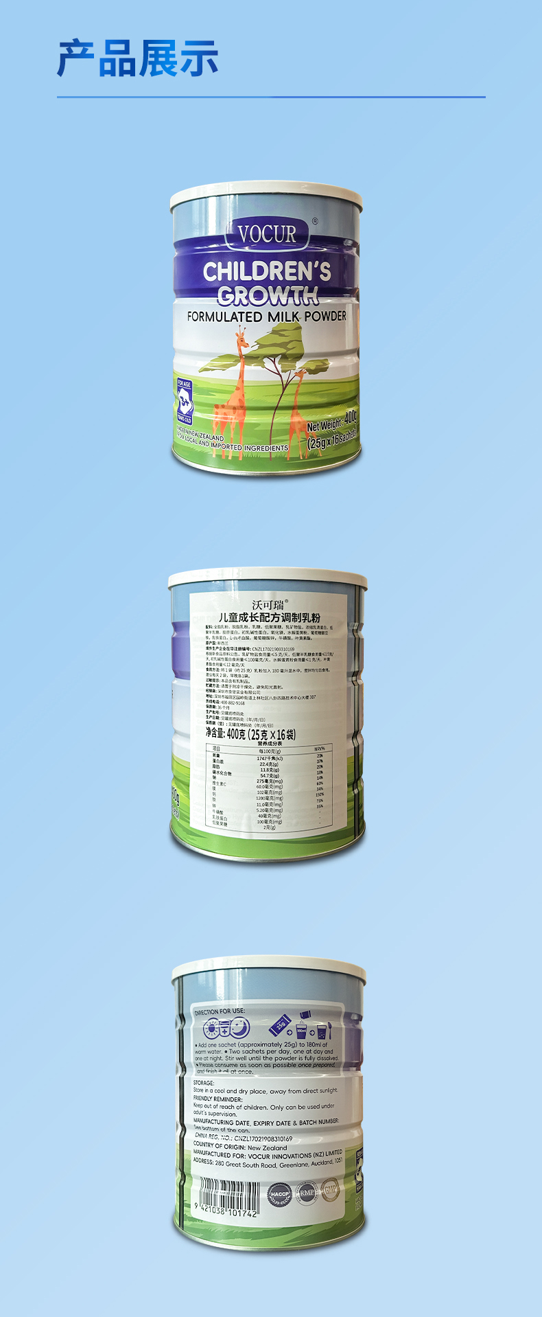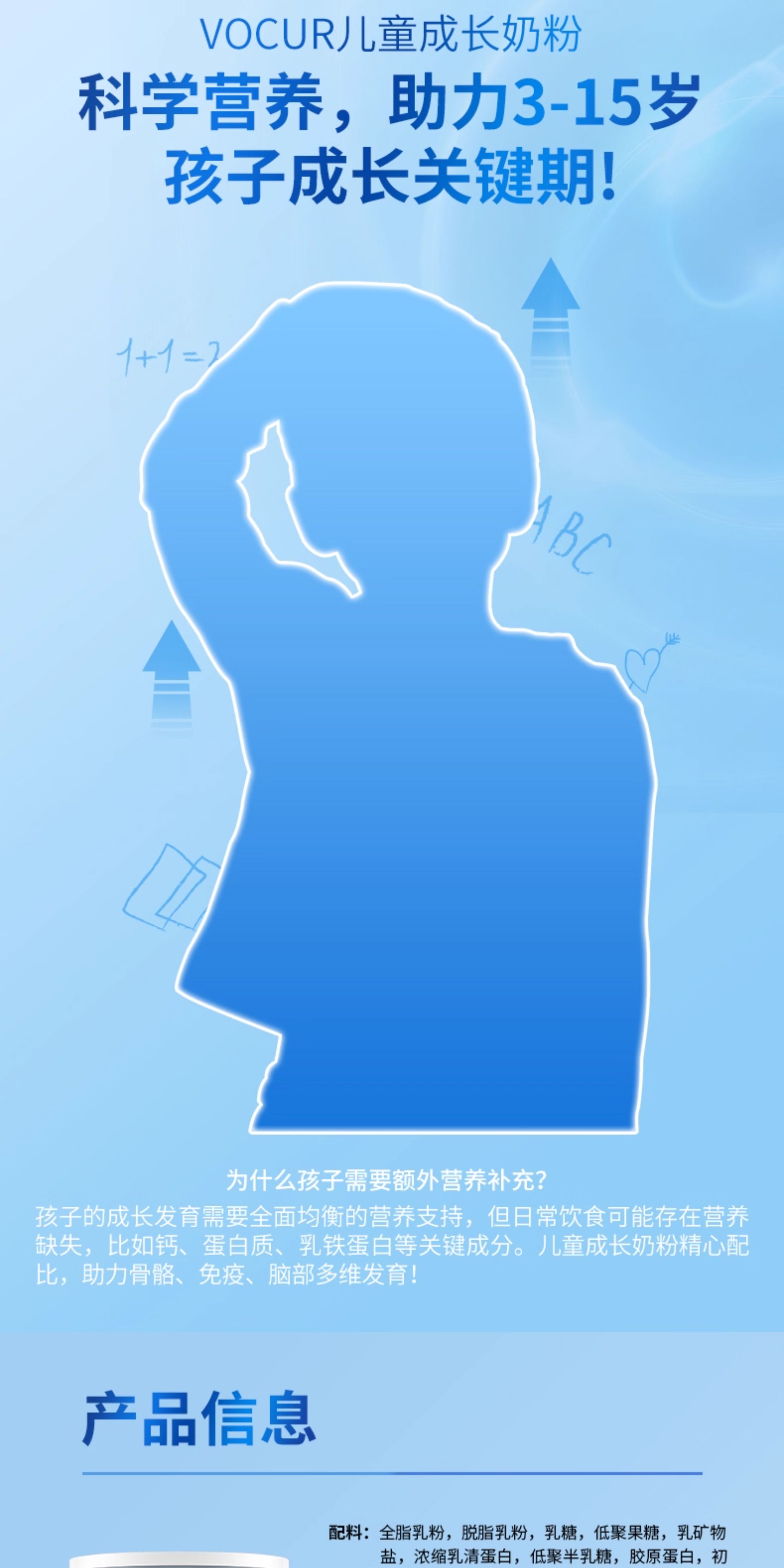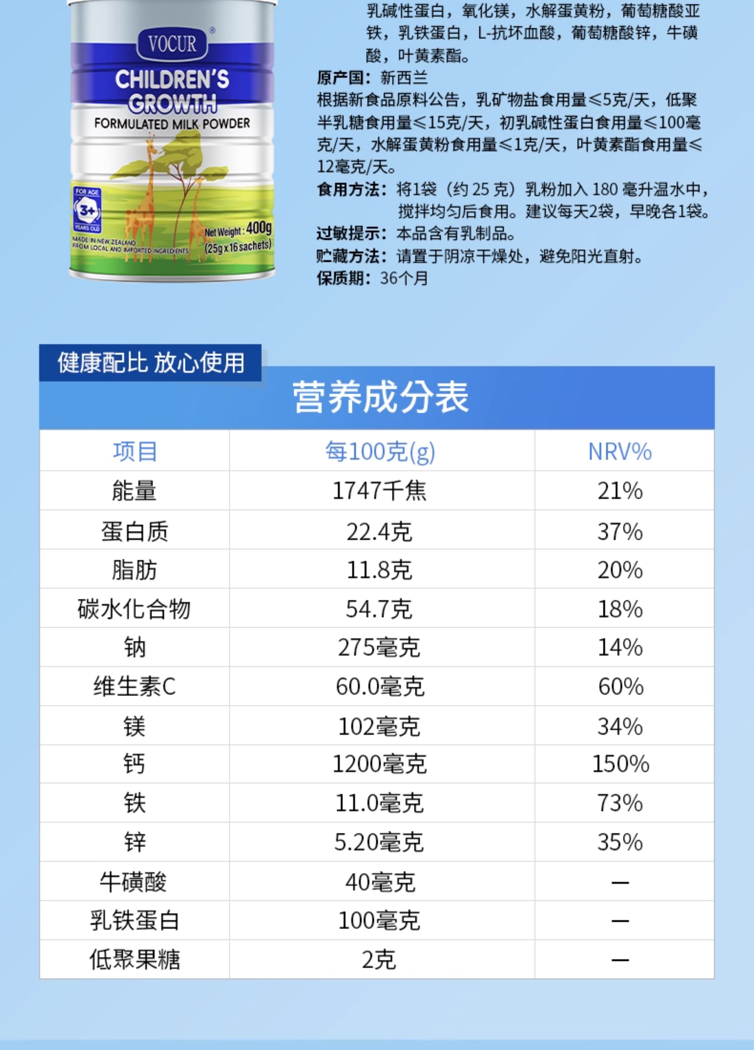 沃可瑞 儿童成长配方调制乳粉 400g