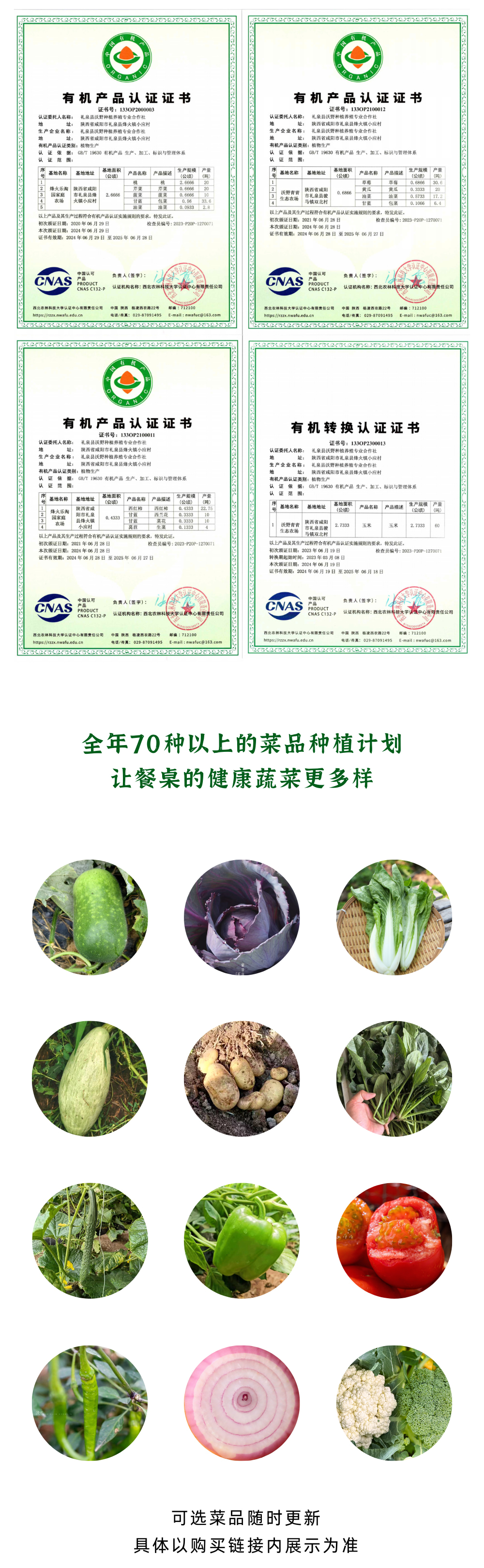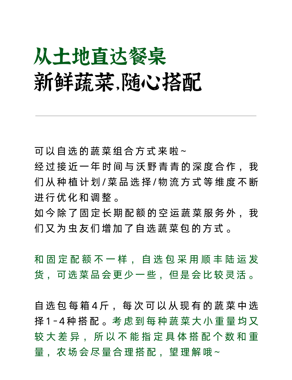 2、每种蔬菜大小重量不一,农场尽量合理搭配,不能指定具体数量/重量,请见谅