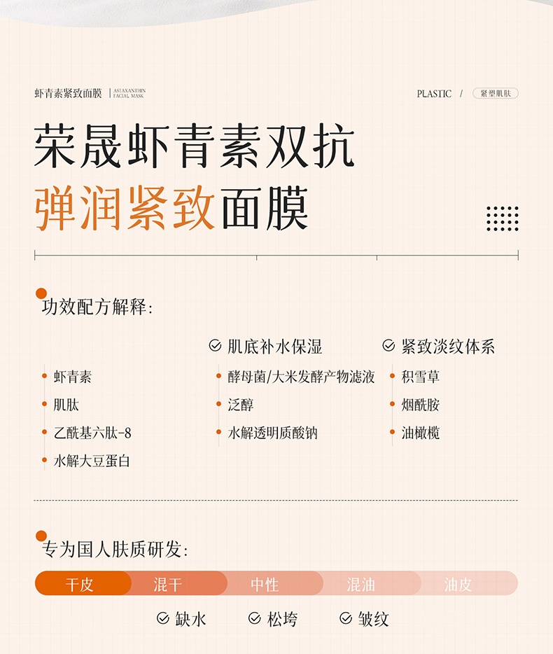 【49元到手30片】荣晟虾青素双抗弹润紧致面膜 沁润肌底,紧致肌肤,补水淡纹,补水保湿面膜QQ