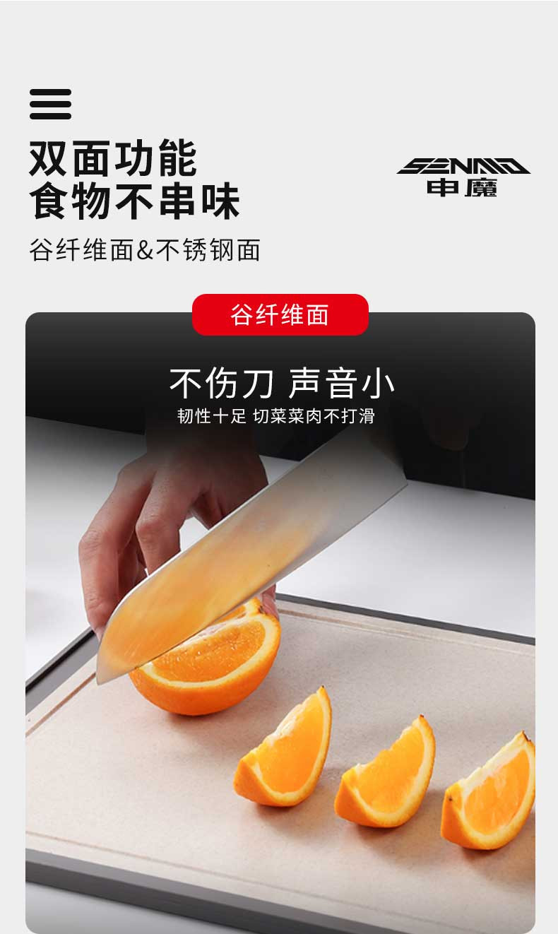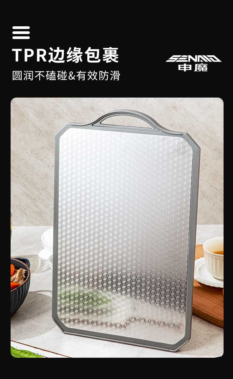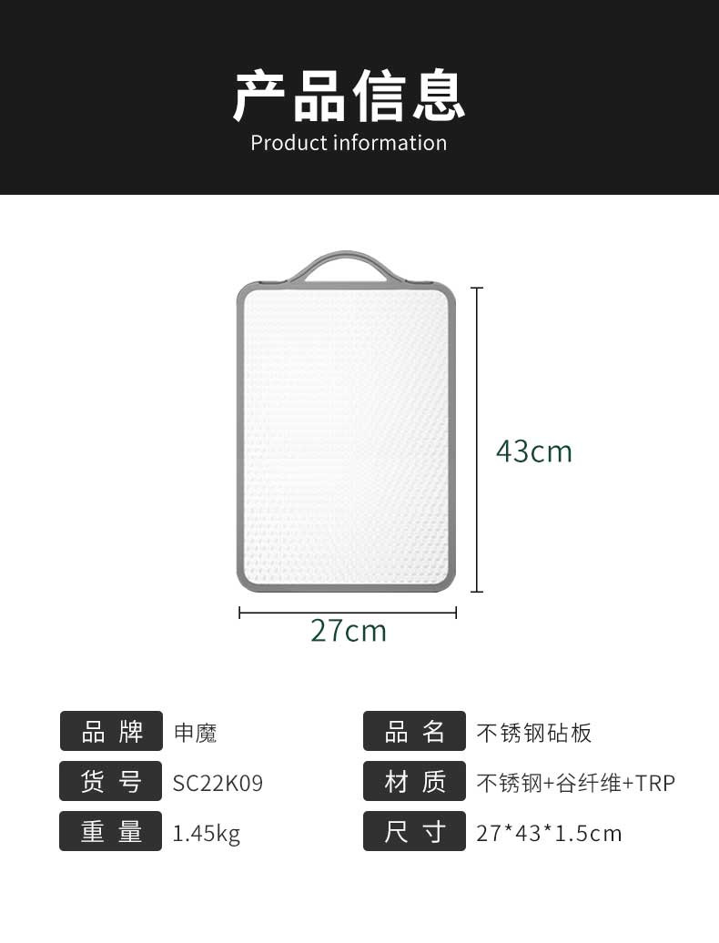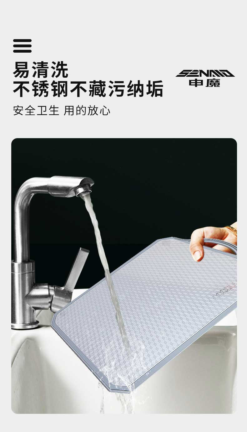 申魔 抗菌不锈钢砧板 双面切菜板加厚案板防霉厨房家用切菜剁骨菜板 不锈钢砧板SC22K09