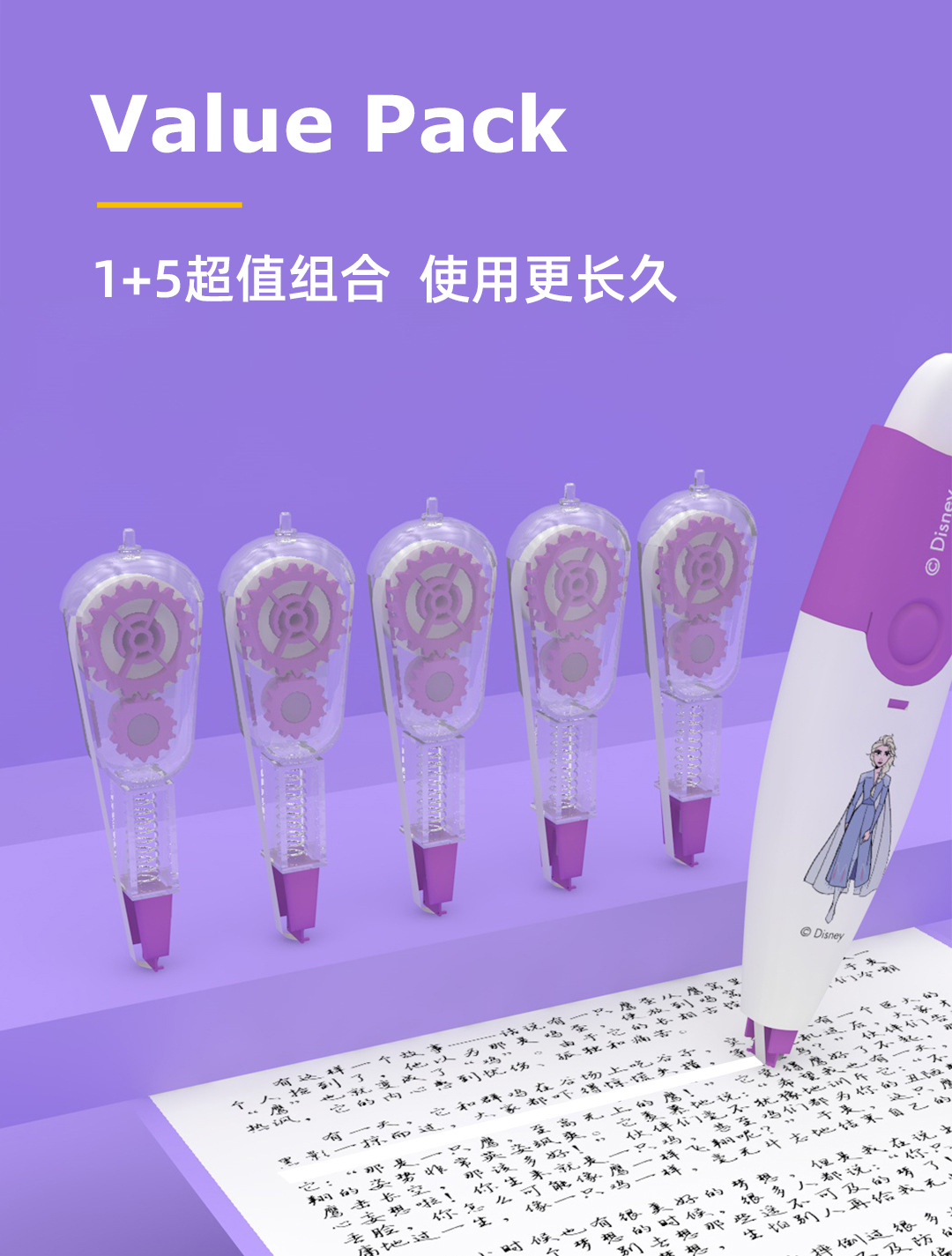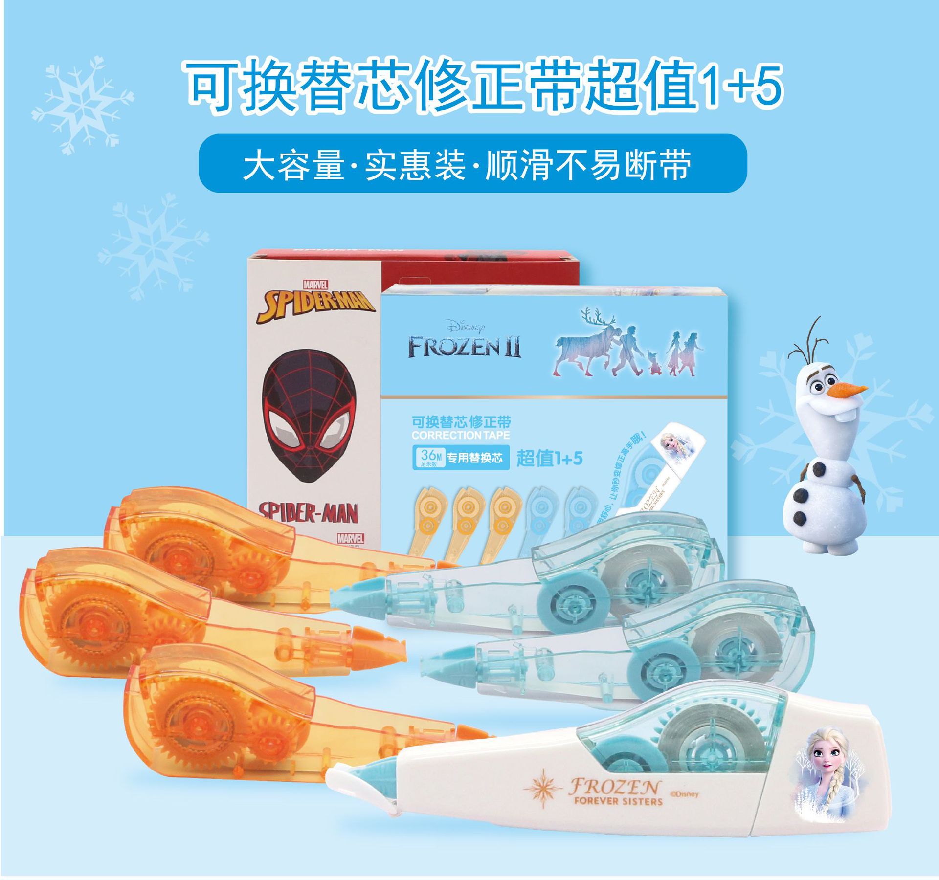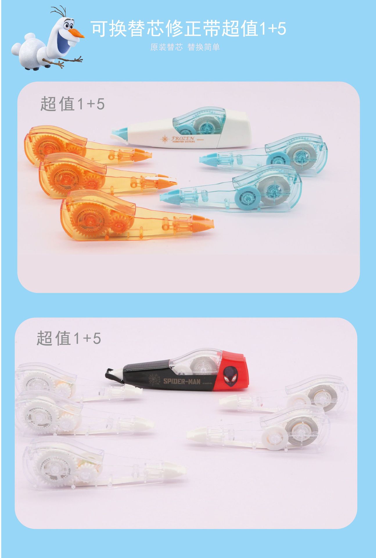 开学季福利!【1+5彩盒套装】迪士尼儿童修正带大容量可换芯涂改带卡通学生改正带替换套装
