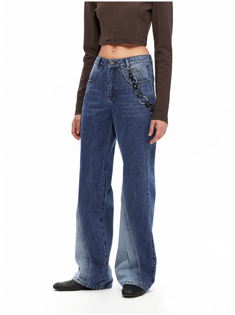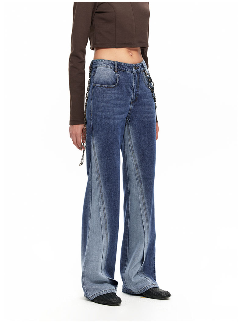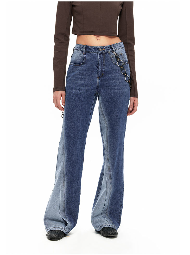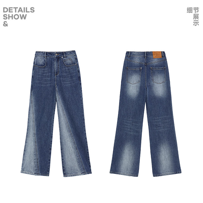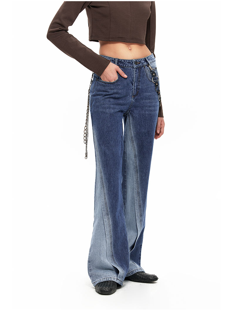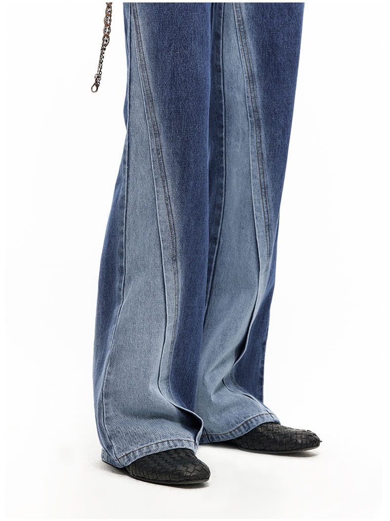 NUTH “斜向渐变”|蓝色渐变牛仔裤倾斜切割拼接设计微喇长裤