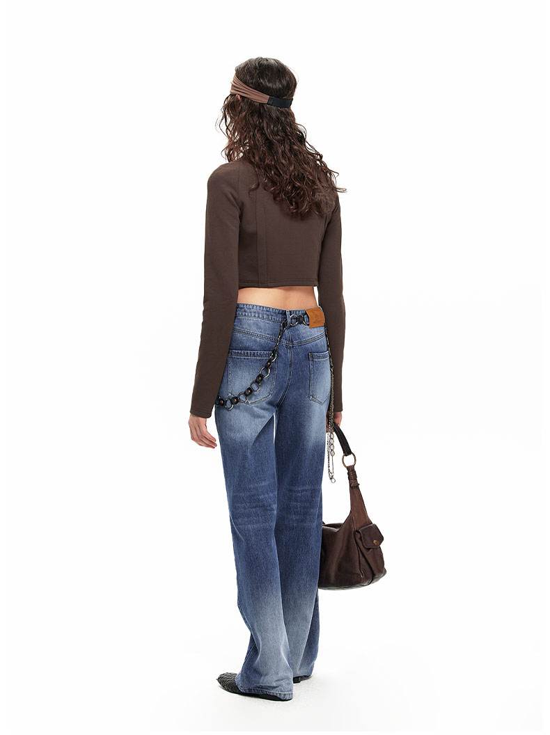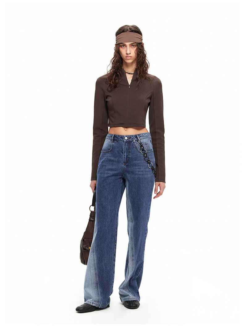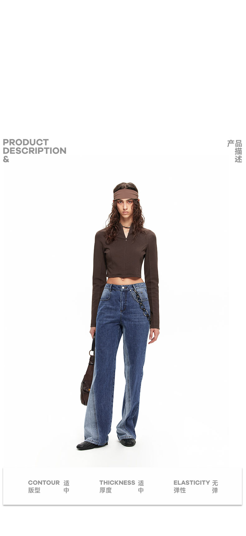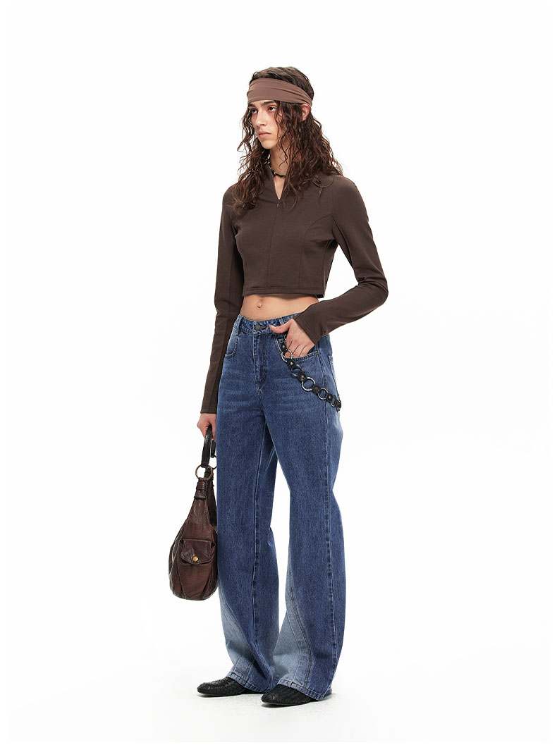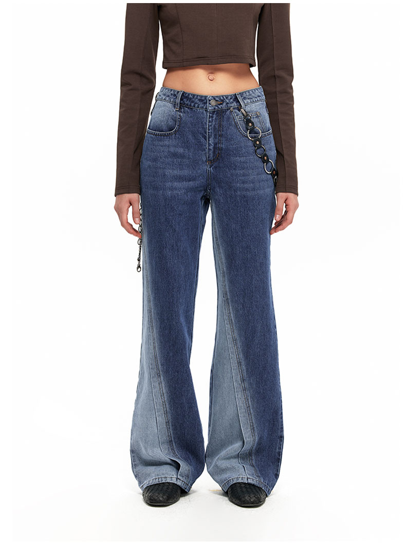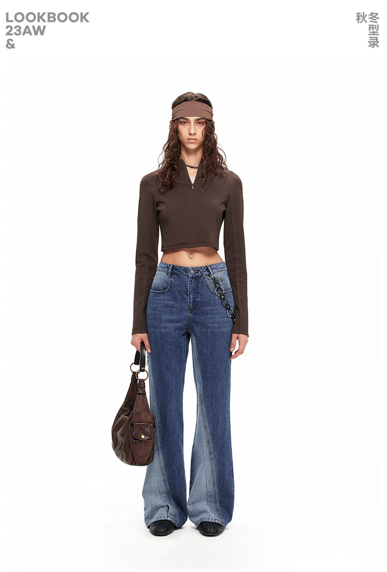 NUTH “斜向渐变”|蓝色渐变牛仔裤倾斜切割拼接设计微喇长裤
