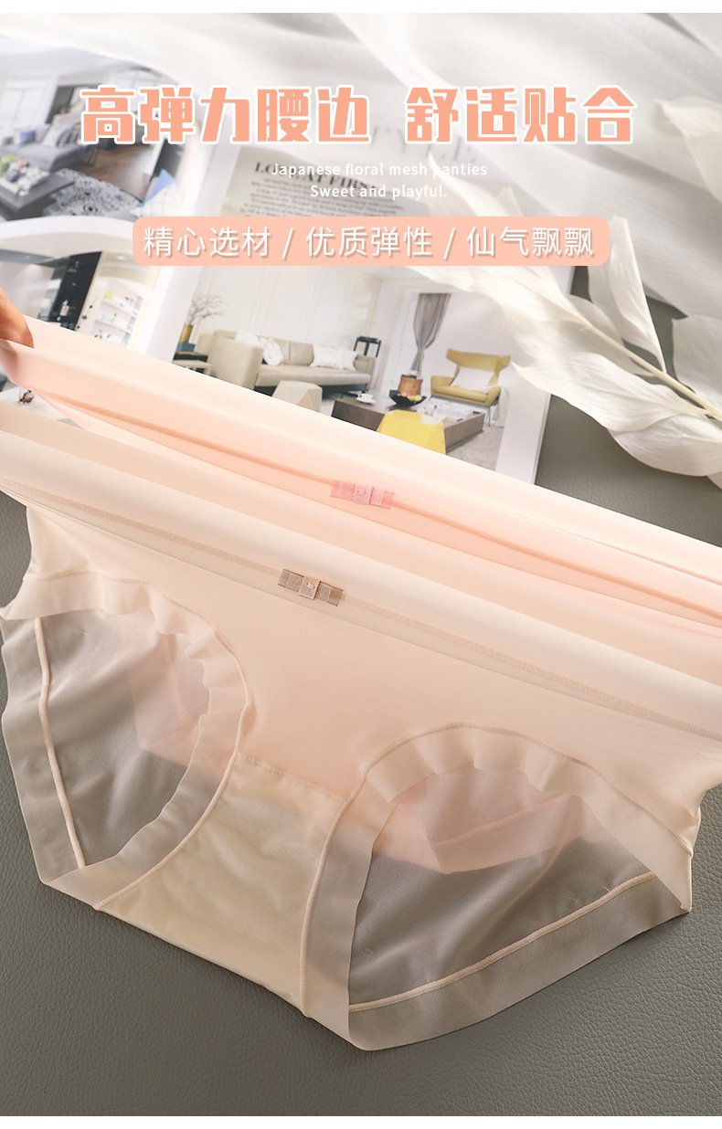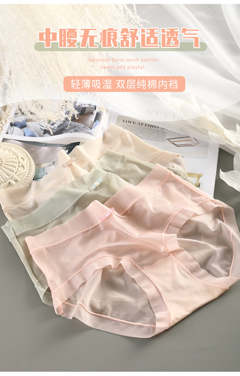 宝娜斯内裤女夏季薄款冰丝无痕内裤中腰透气性感少女蕾丝面膜短裤 心选到家