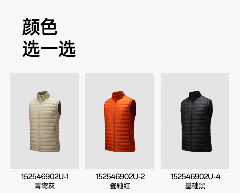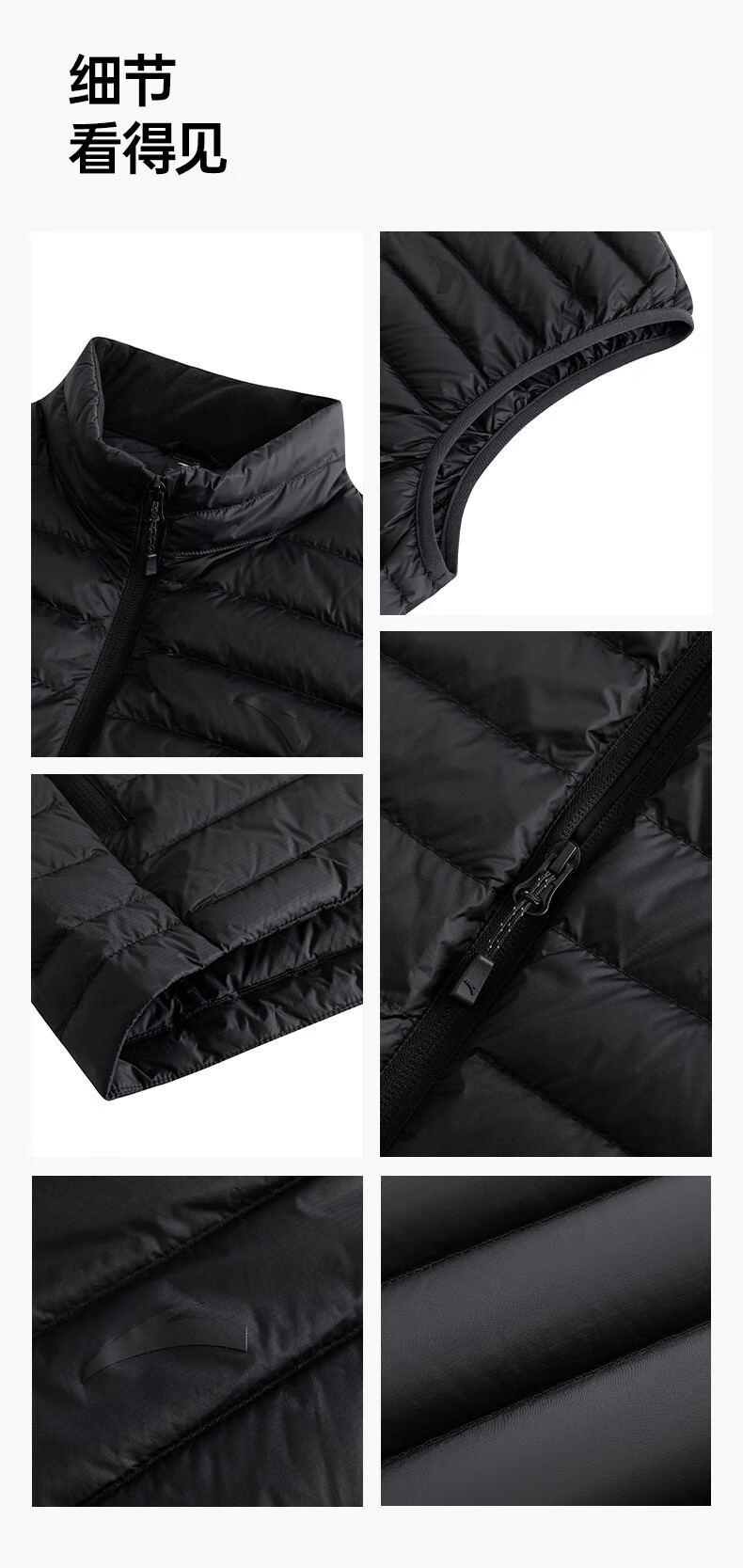 超级安踏防泼水轻薄羽绒马甲男士秋冬修身保暖运动通勤无袖上衣152546902U