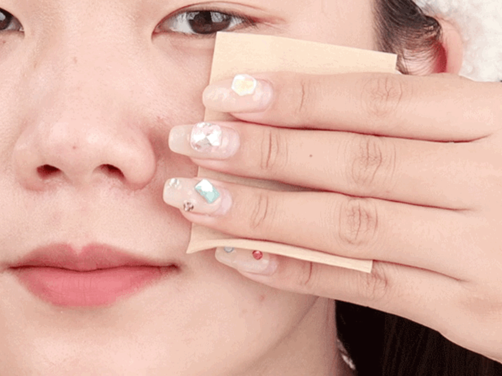 涂抹面霜后,用吸油纸在肌肤表面按压