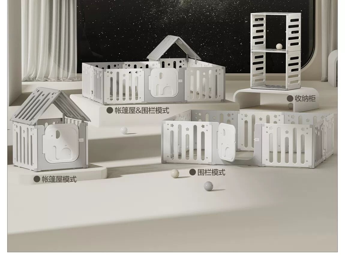 贝易星空围栏防护栏婴儿爬爬垫宝宝游戏室内儿童家用客厅小房子【下单送三角卡扣】