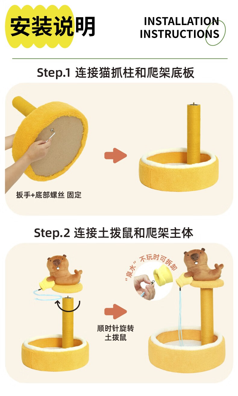 噗扑实验室 许愿池土拨鼠柱立式猫抓板猫爬架
