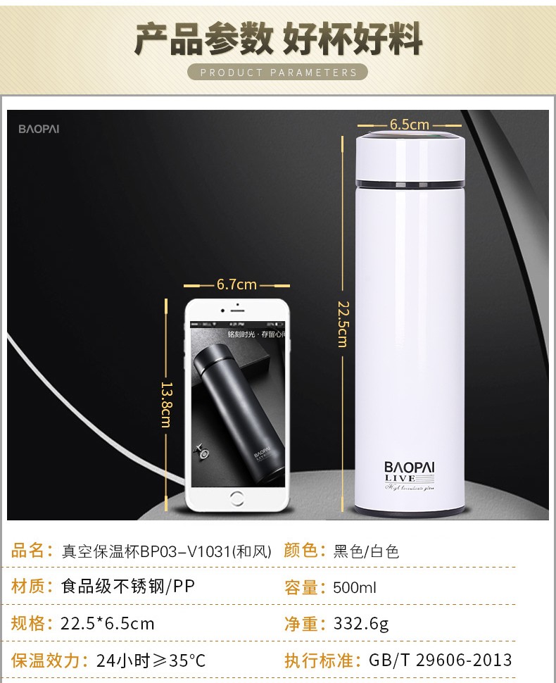 豹牌 真空保温杯(和风) 304不锈钢内胆 长效保温保冷 BP03-V1031