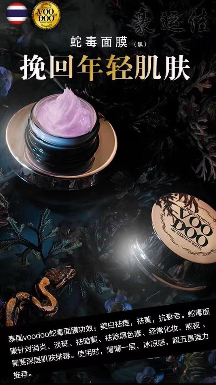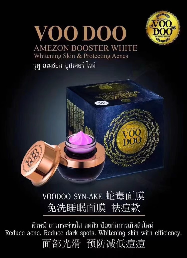 voodoo泰国蛇毒睡眠面膜-祛痘款(黑瓶)30g针对暗疮痘眼退敏感痘印改善肤色暗黄挽回年轻肌肤
