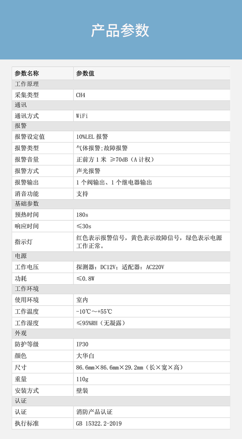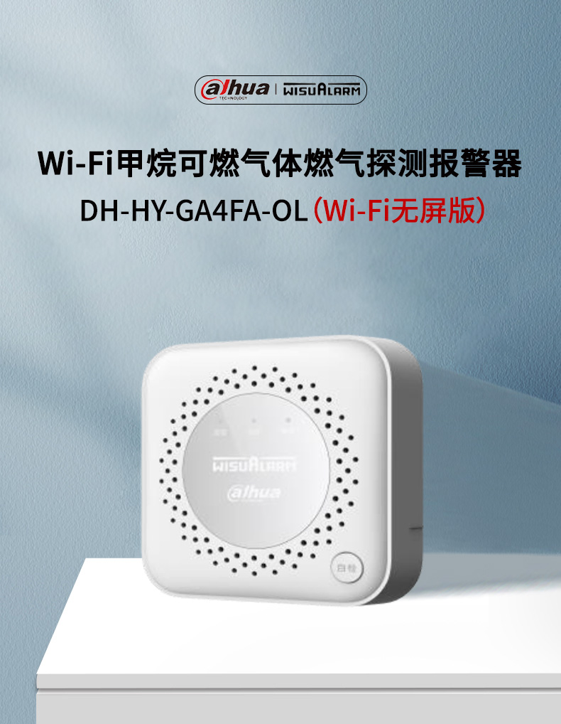 Wi-Fi甲烷(天然气)可燃气体燃气探测报警器DH-HY-GA4FA-OL(Wi-Fi无屏版)