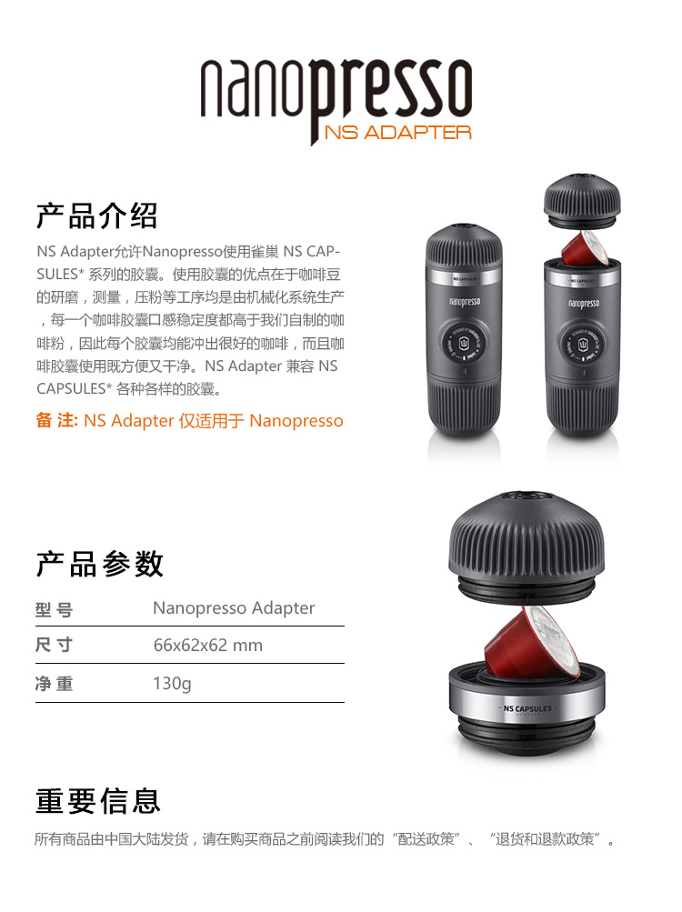 WACACO Nanopresso NS Adapter原装胶囊转换头 【仅适用Nanopresso系列】
