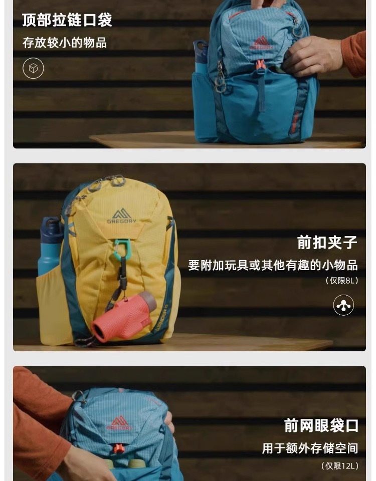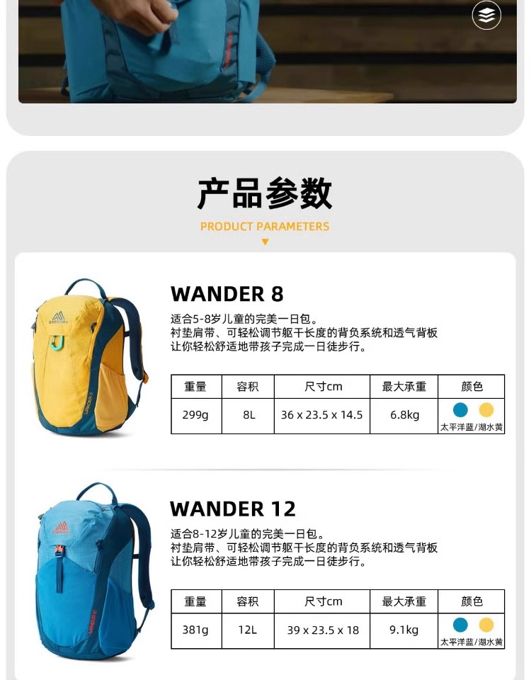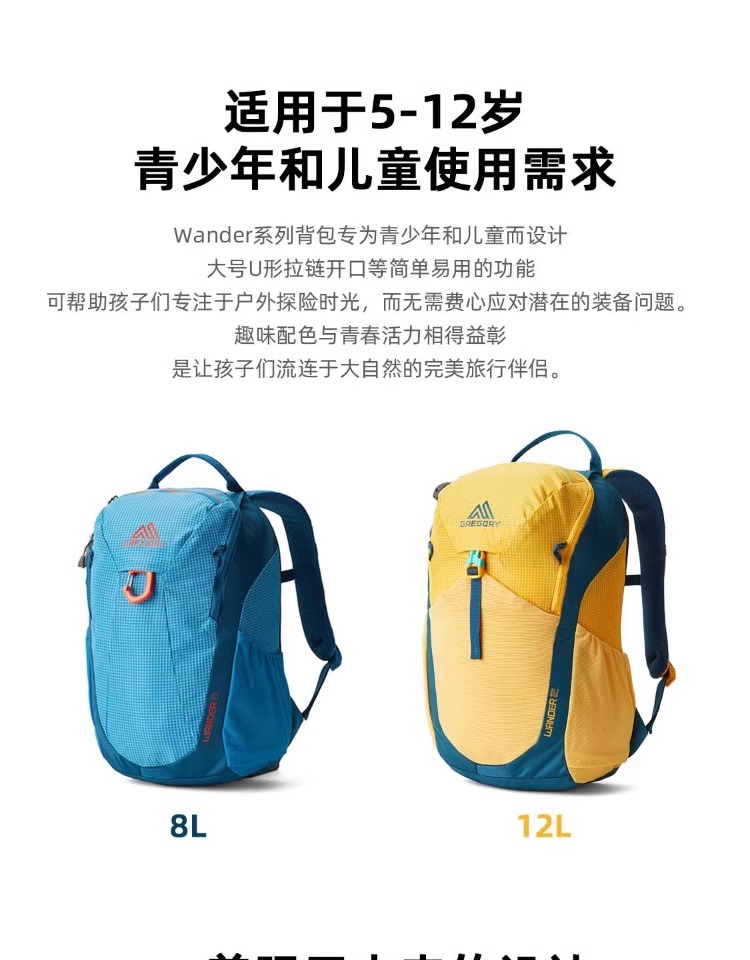 GREGORY格里高利WANDER 儿童户外背包小学生书包旅游双肩包男女孩