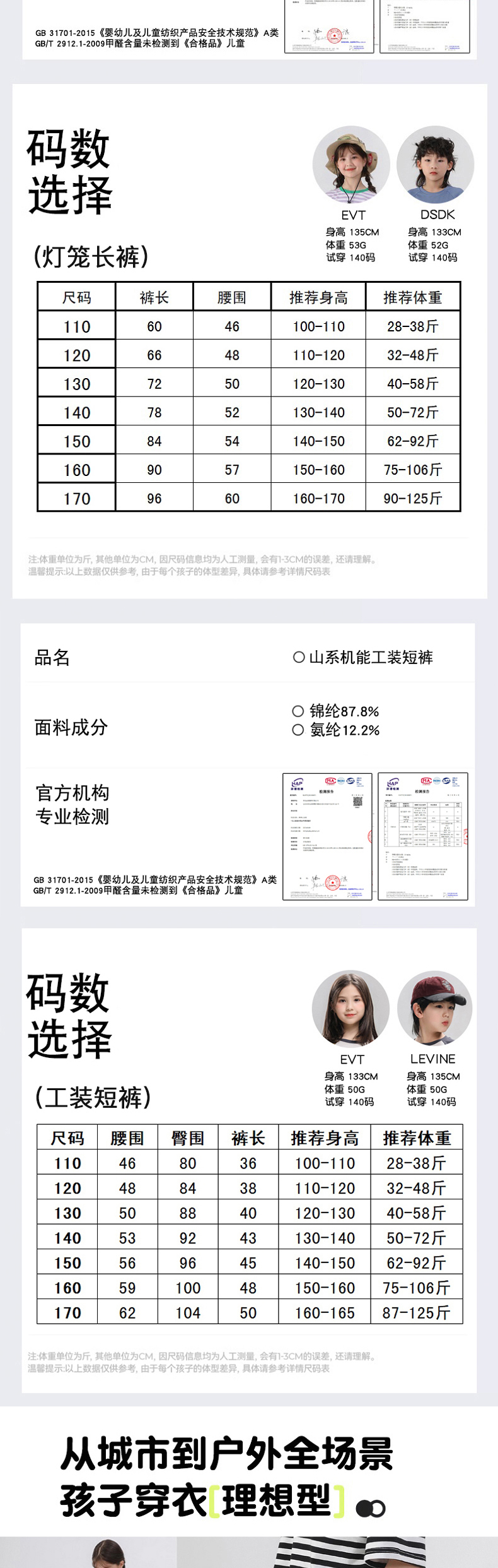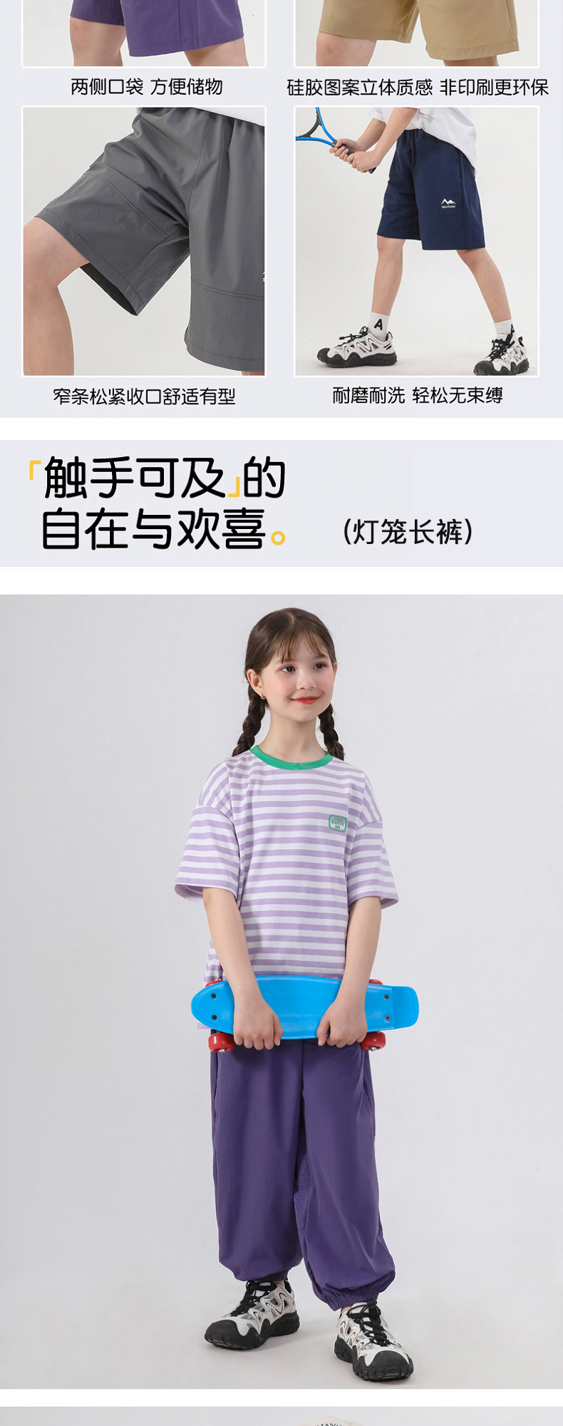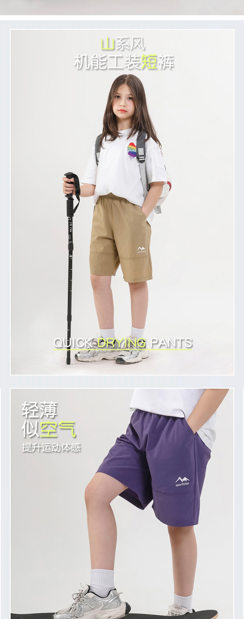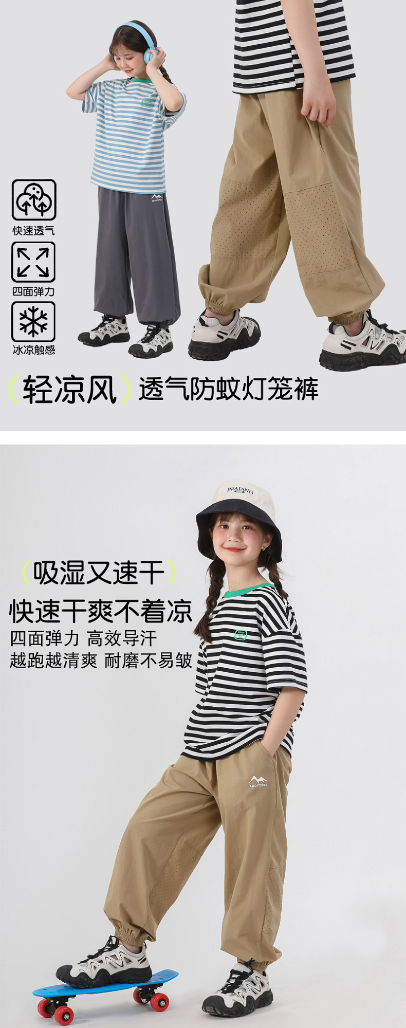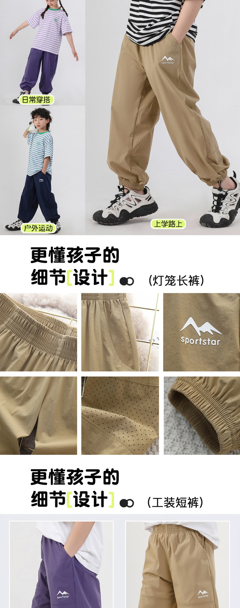 【吸湿速干,四面弹力】【短款+长裤】夏季山系户外男童女童运动速干打孔灯笼长裤中大童薄款凉感短裤登山100%