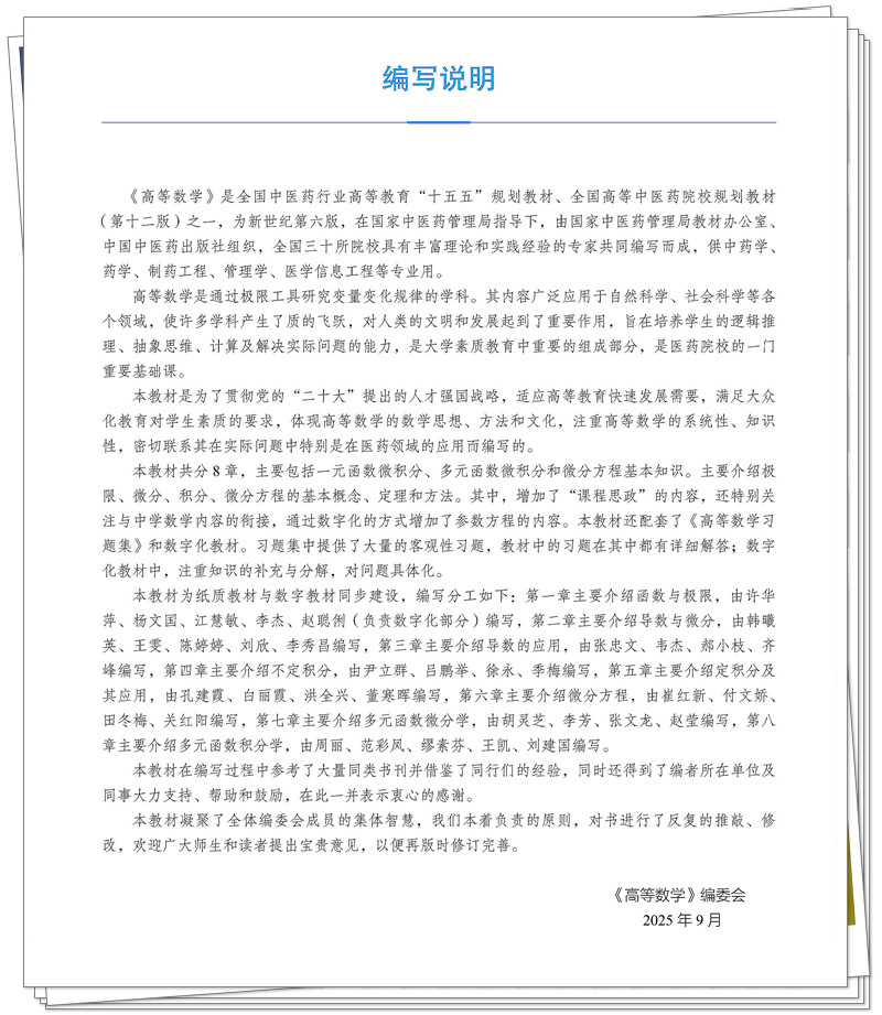 高等数学 李秀昌 刘建国 主编(第六版)全国中医药行业高等教育十五五规划教材第十二版书 中国中医药出版社