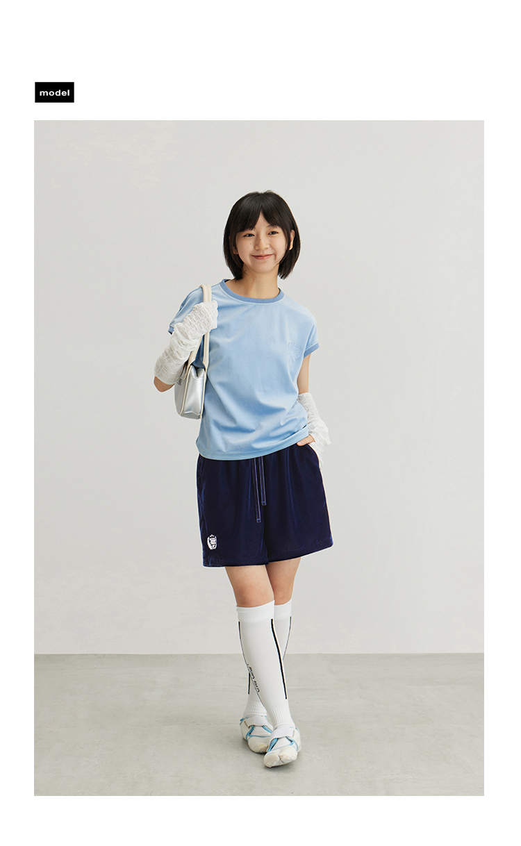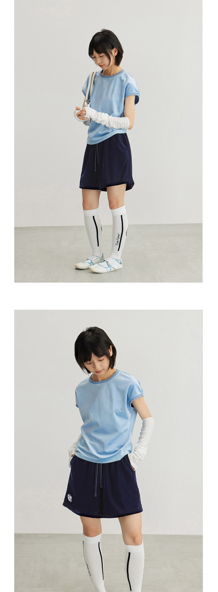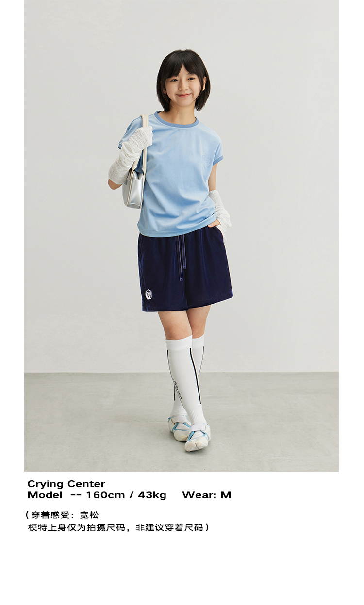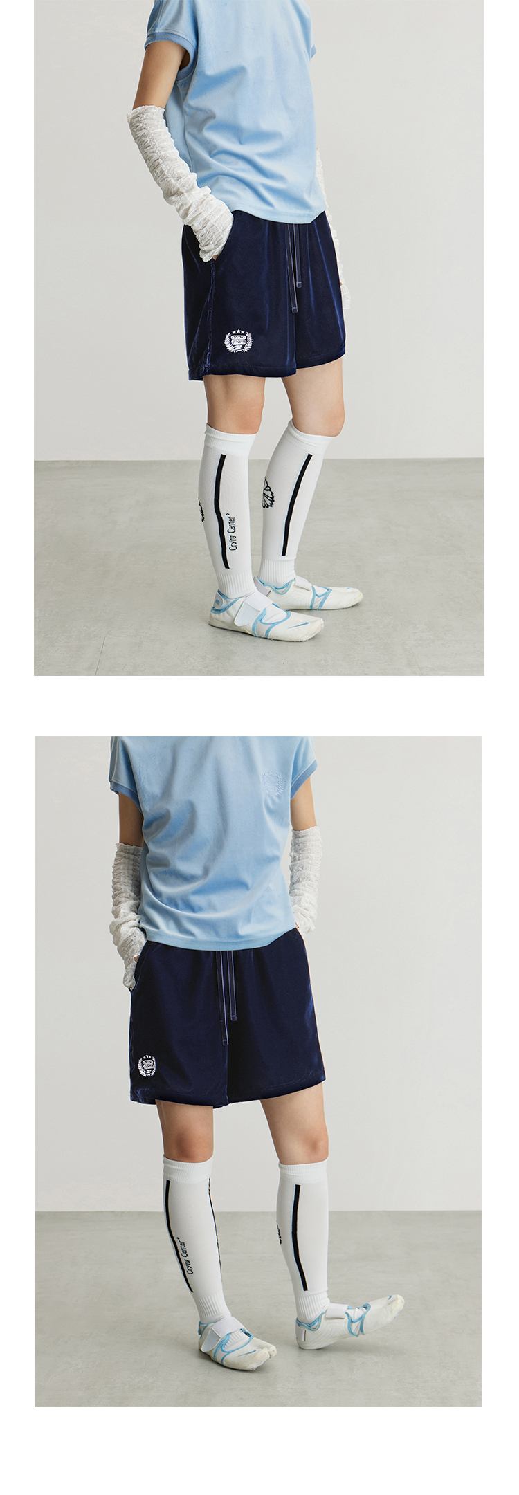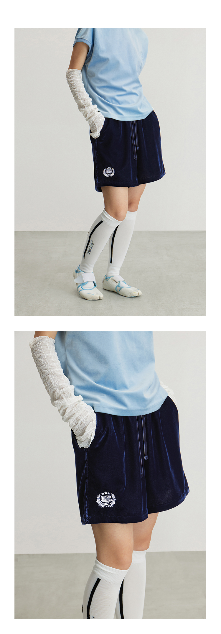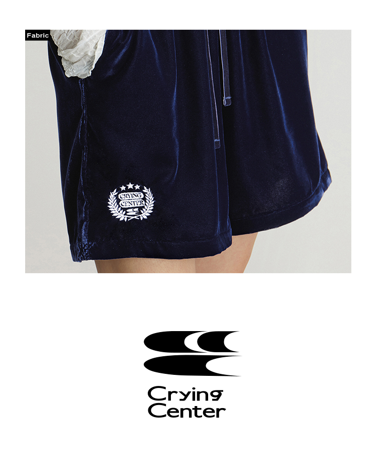 CryingCenter 海军蓝丝绒垂感运动休闲复古学院刺绣短裤