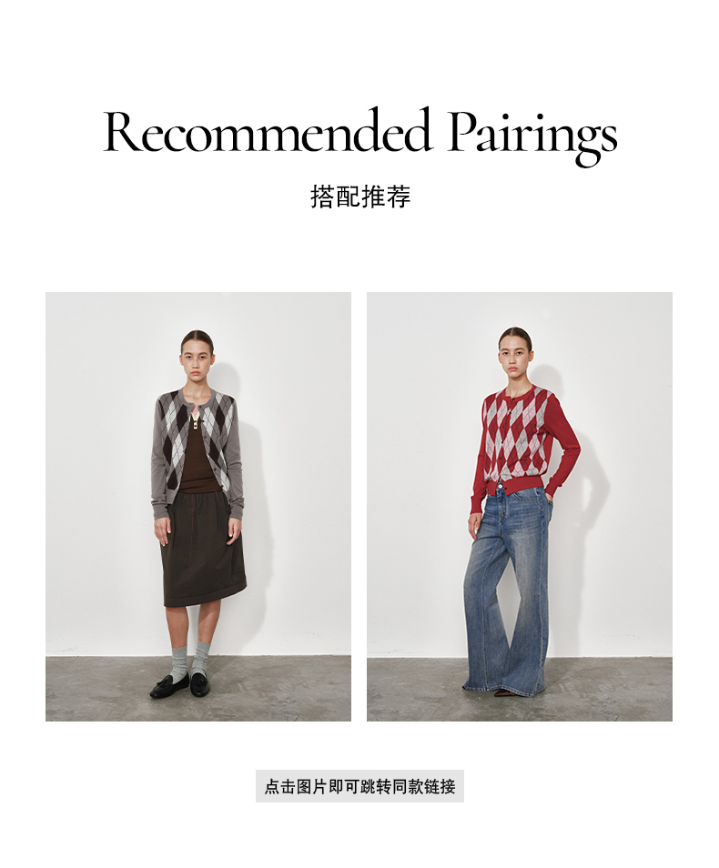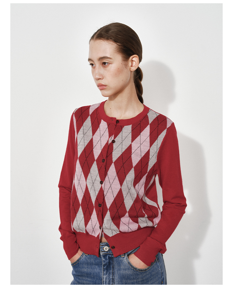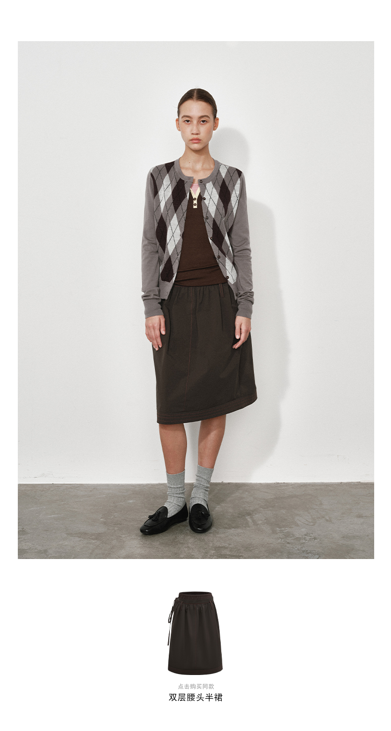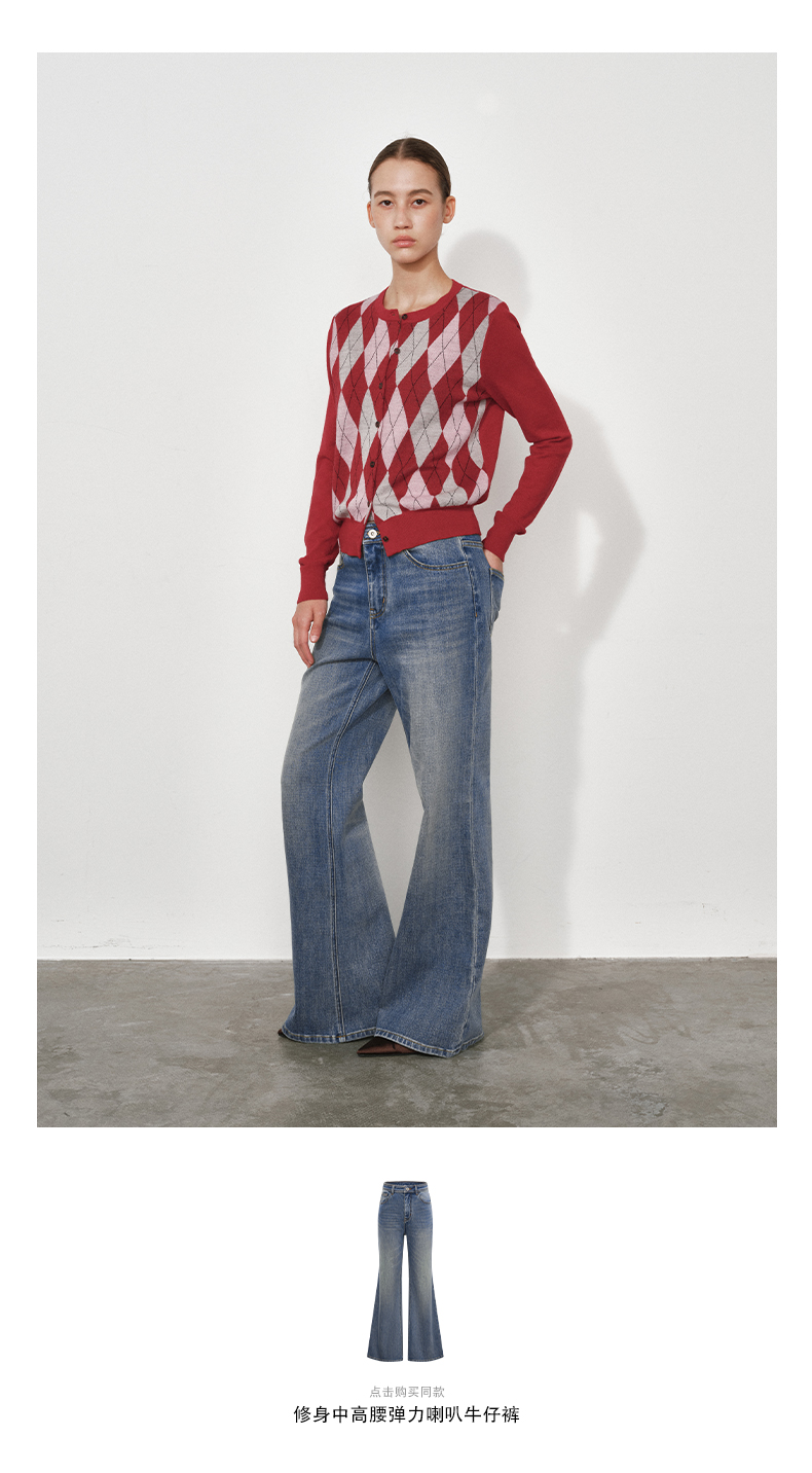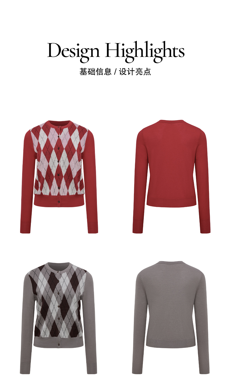 1月15号10点6折!!1.NUTH美利奴羊毛复古撞色格纹提花修身短款针织开衫女