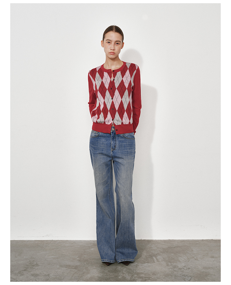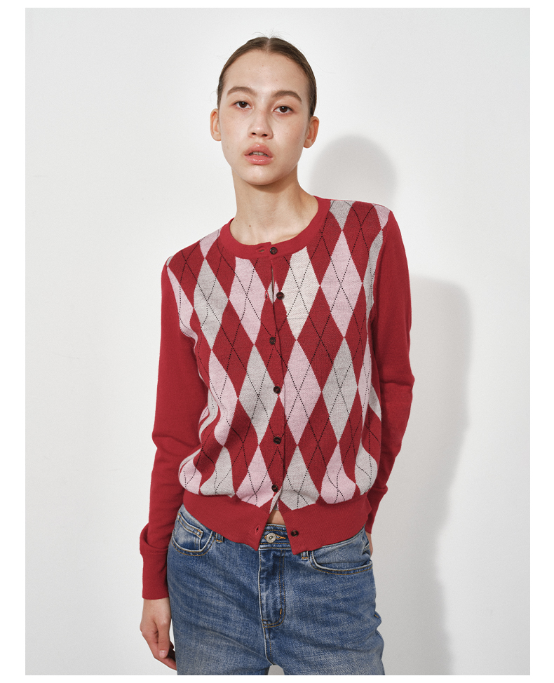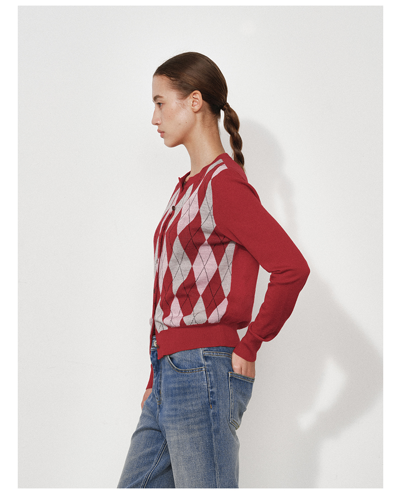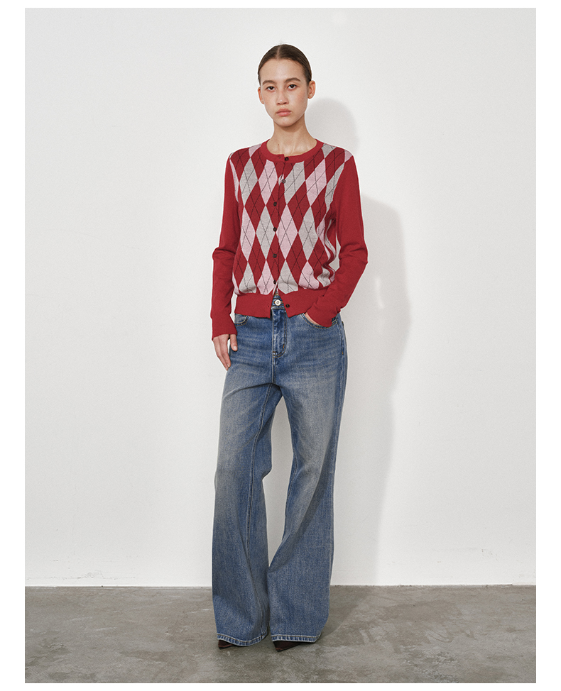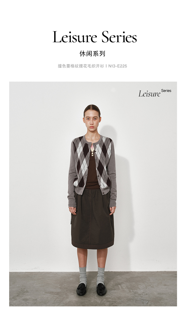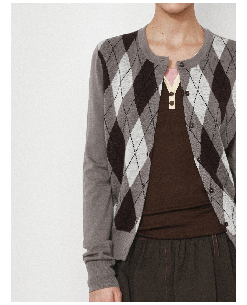 1月15号10点6折!!1.NUTH美利奴羊毛复古撞色格纹提花修身短款针织开衫女