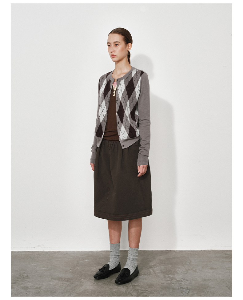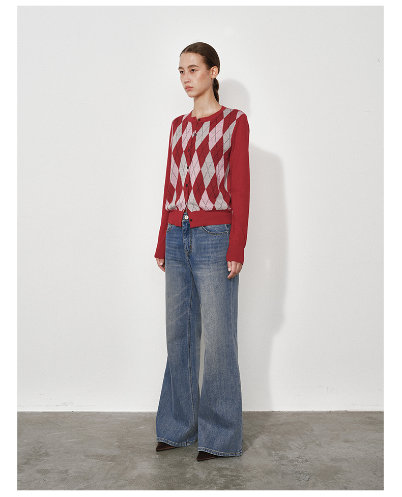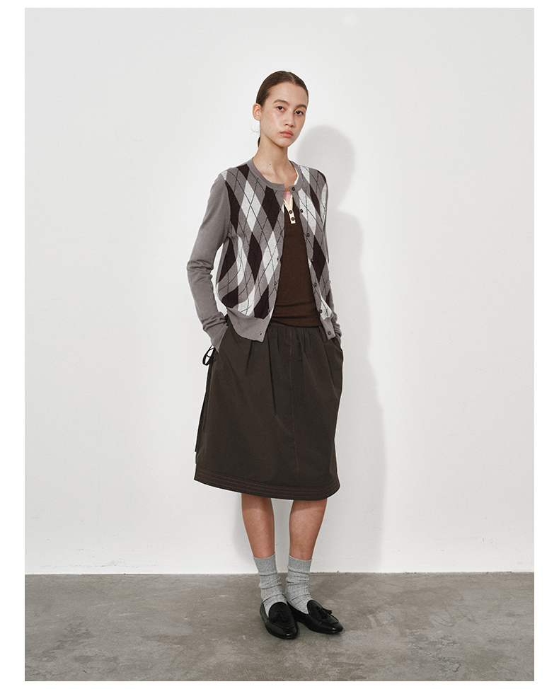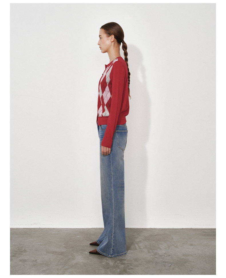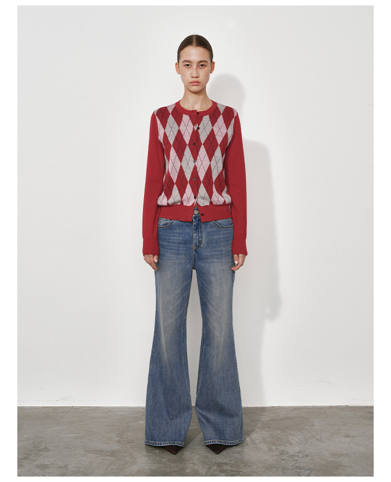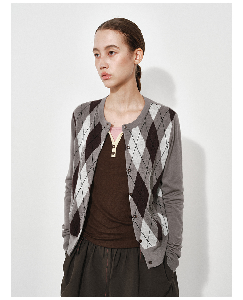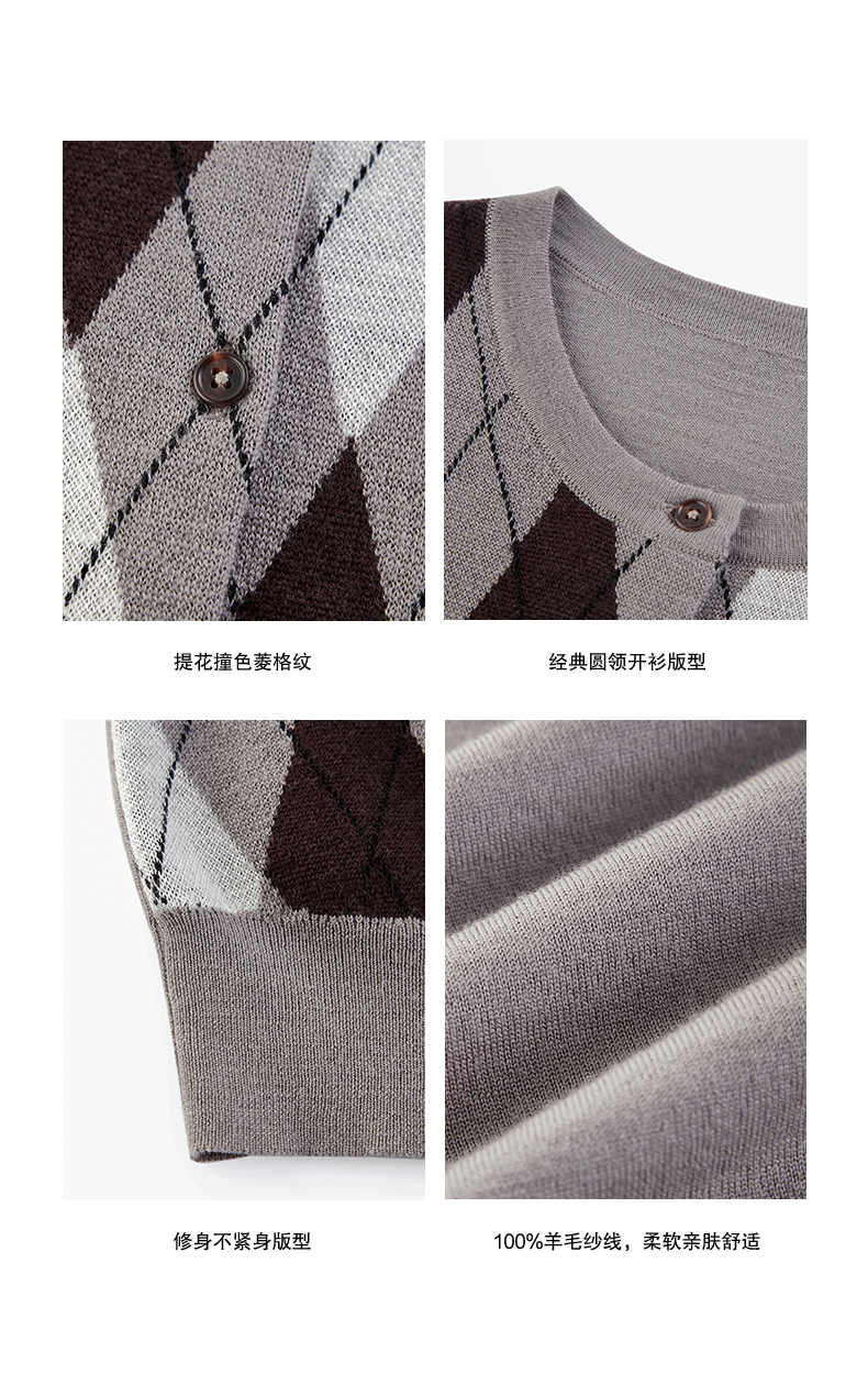 1月15号10点6折!!1.NUTH美利奴羊毛复古撞色格纹提花修身短款针织开衫女