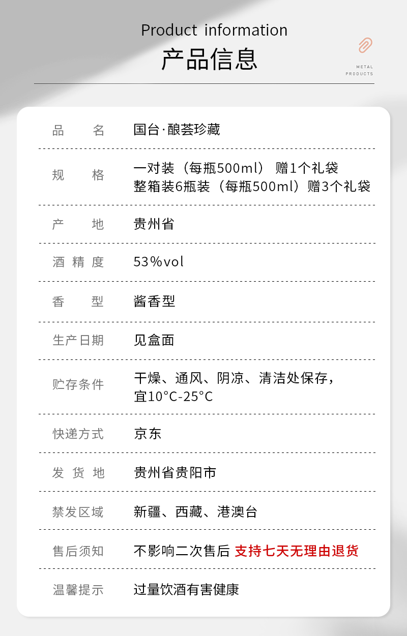 一价到底【国台酿荟珍藏53度酱香型白酒】来自茅台镇核心产区,大师精造酱香浓郁,宴请收藏皆相宜!500ml / 瓶