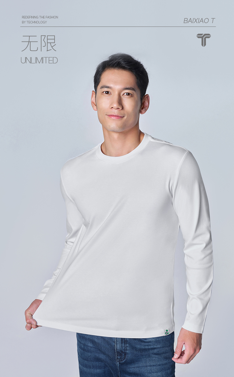 拇指白小T丝光棉PLUS舒体长袖T恤