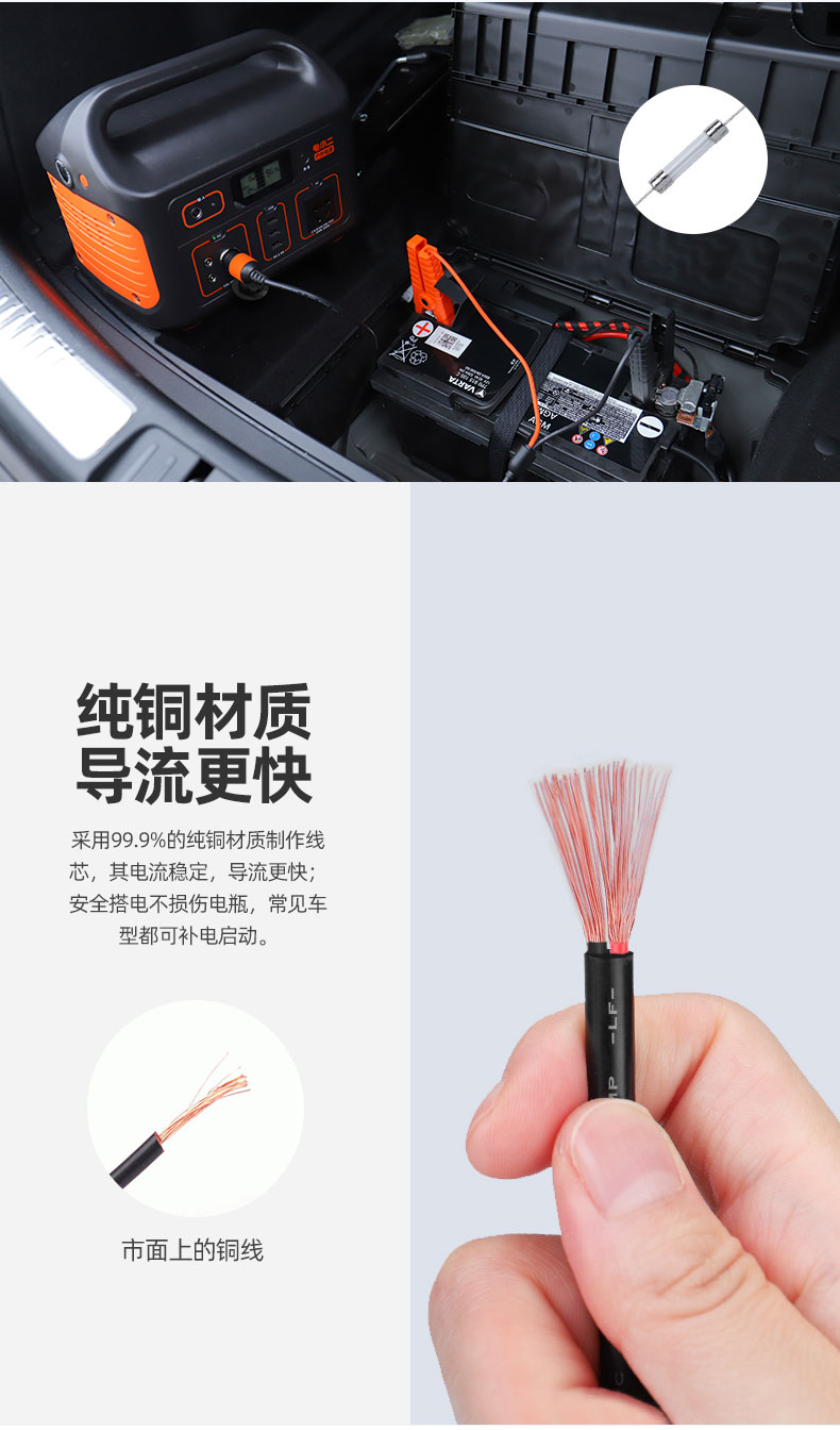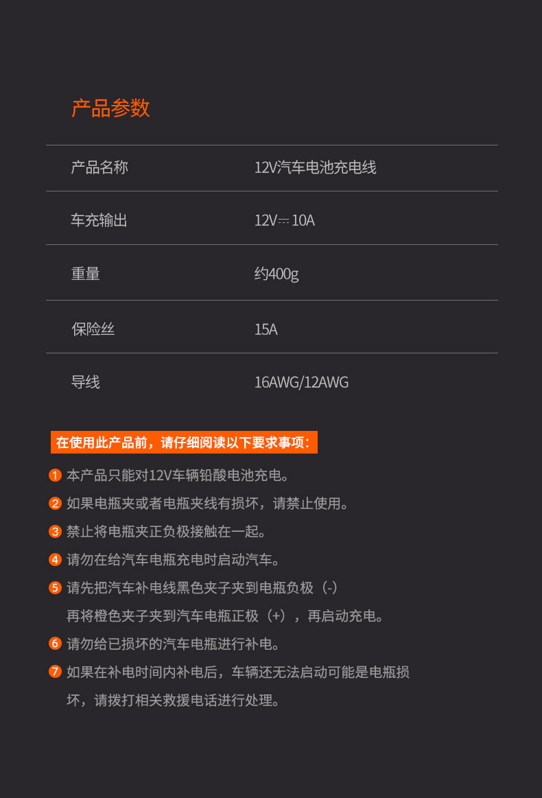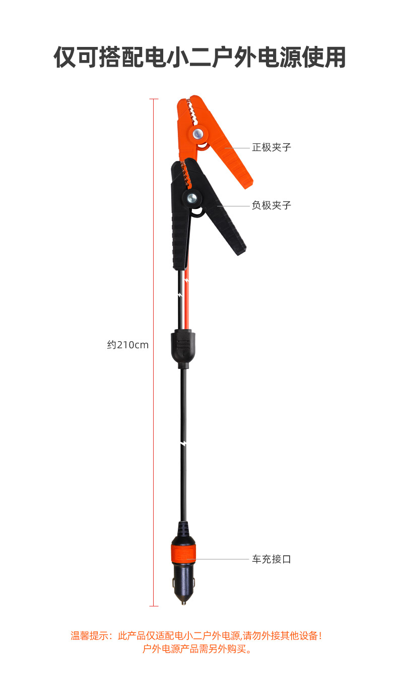 电小二汽车蓄电池12V补电线搭配户外电源使用应急打火连接搭电线