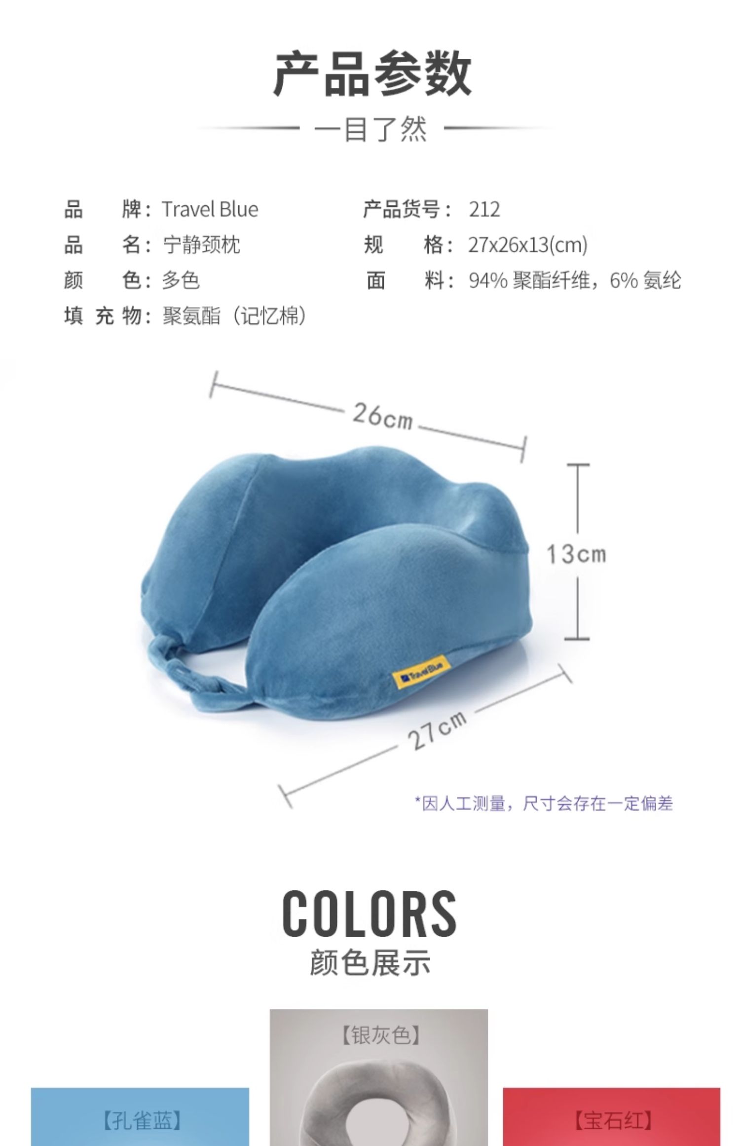 Travel Blue 蓝旅 宁静颈枕 大 孔雀蓝