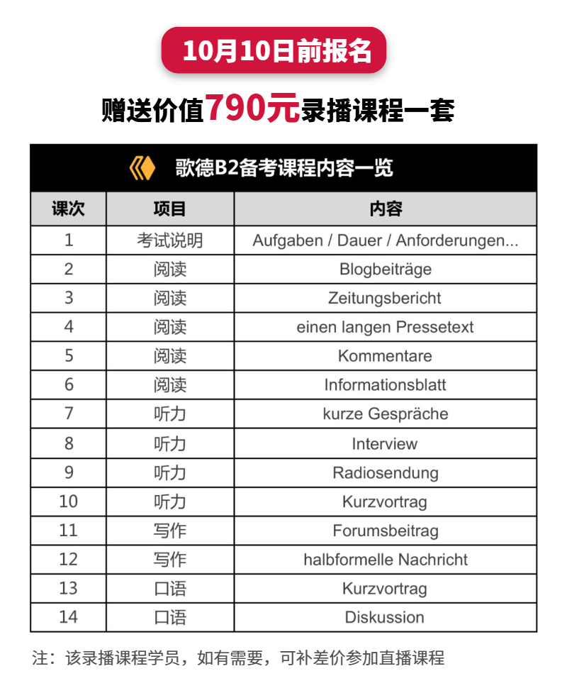 【10月14日开课】德语B2证书备考直播课