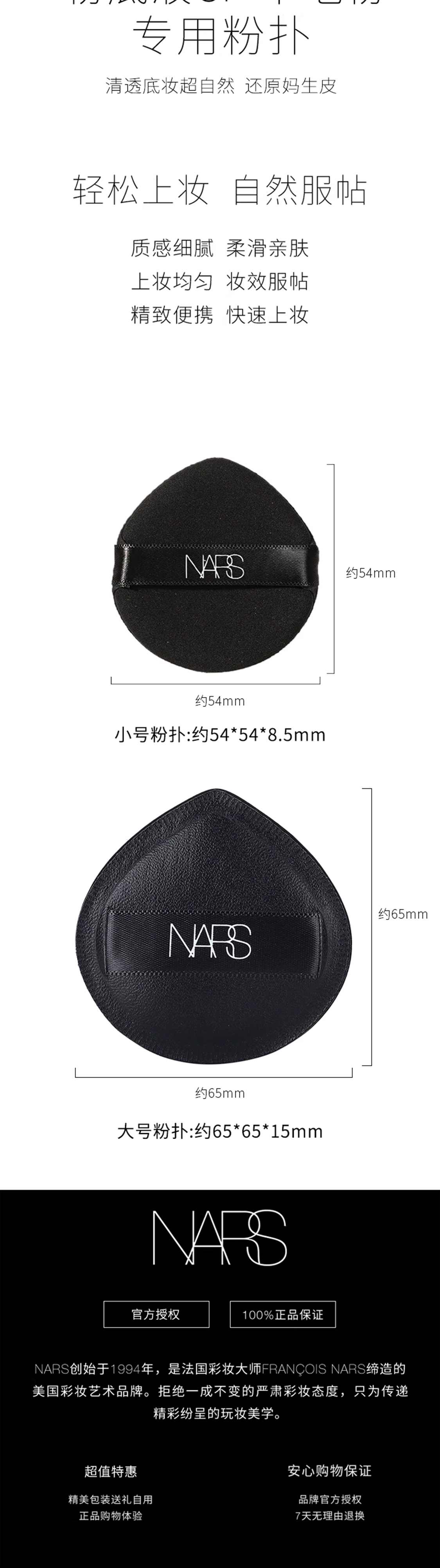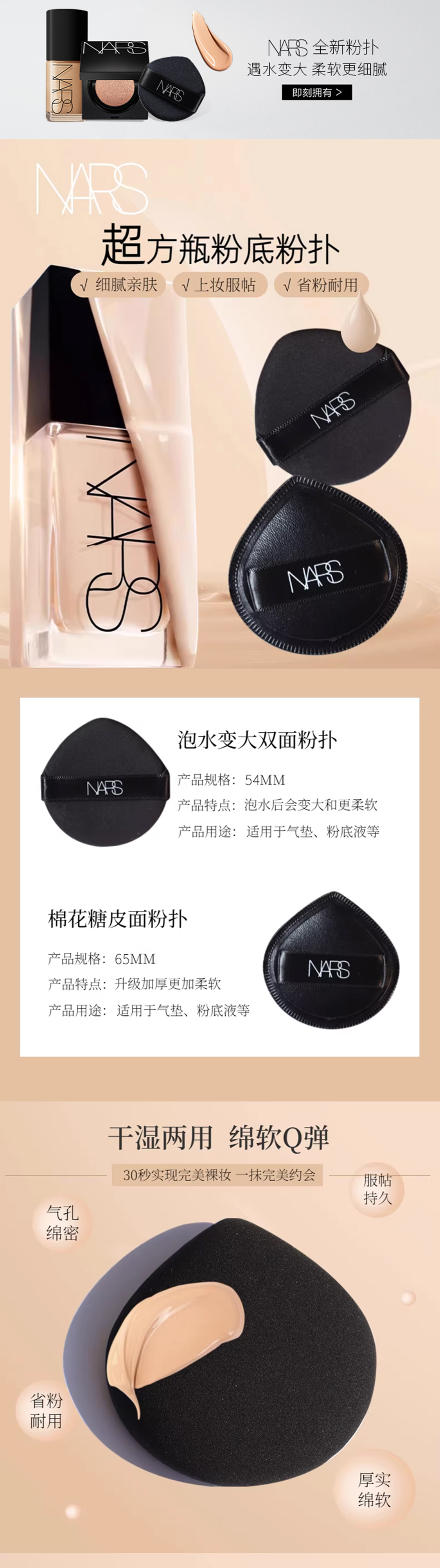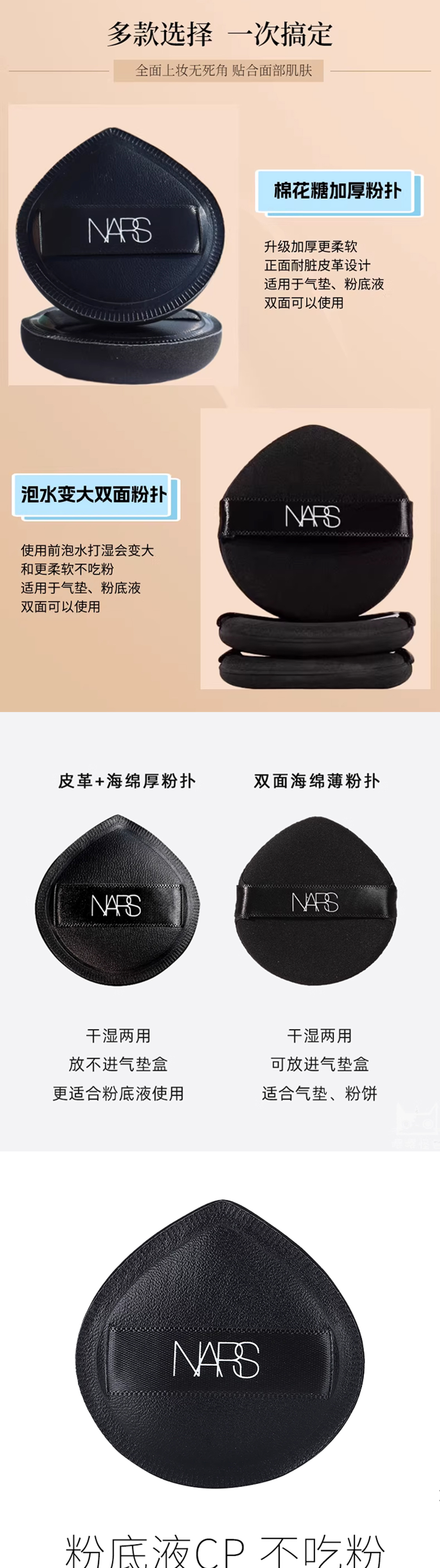 【NARS棉花糖粉扑】干湿两用软绵Q弹(大粉扑*1+水滴小粉扑*2)