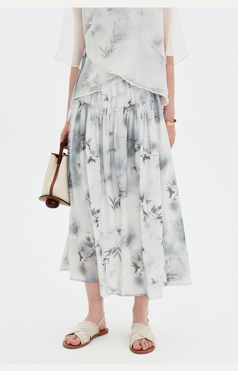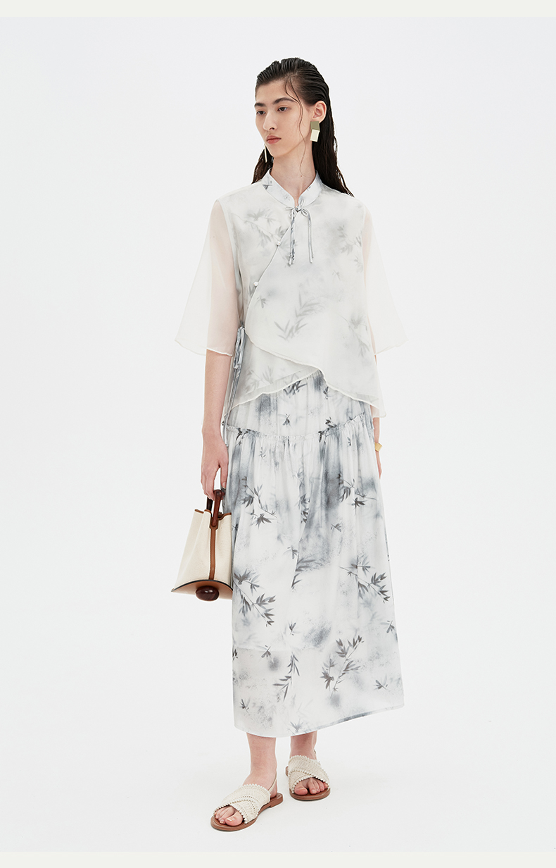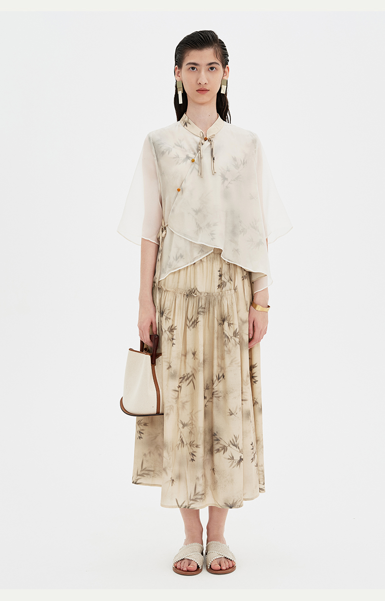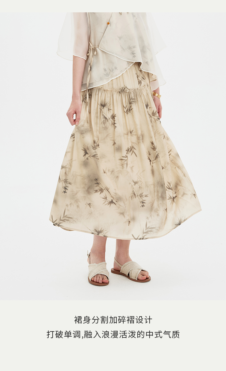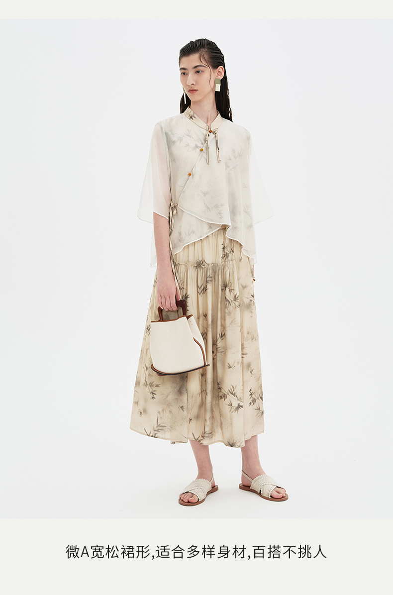 SELFWHO涤棉混纺新中式半身裙2024夏国风清新典雅设计感舒适裙子