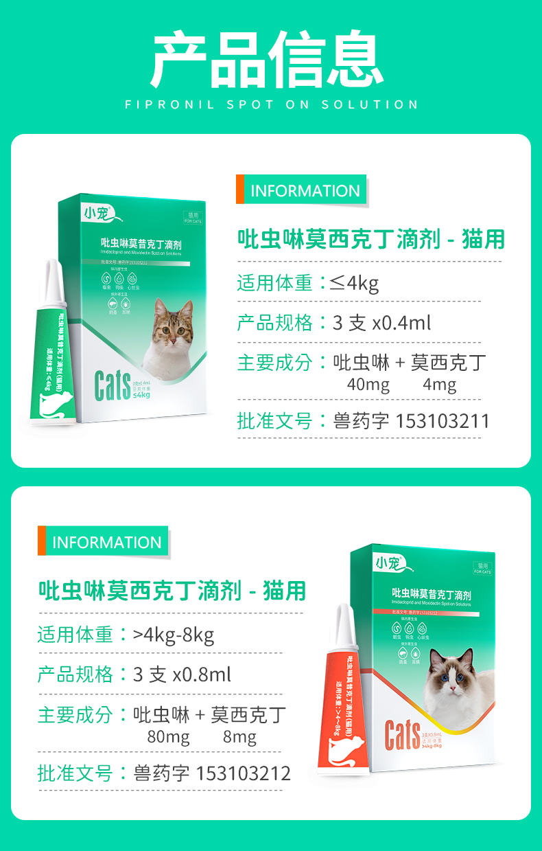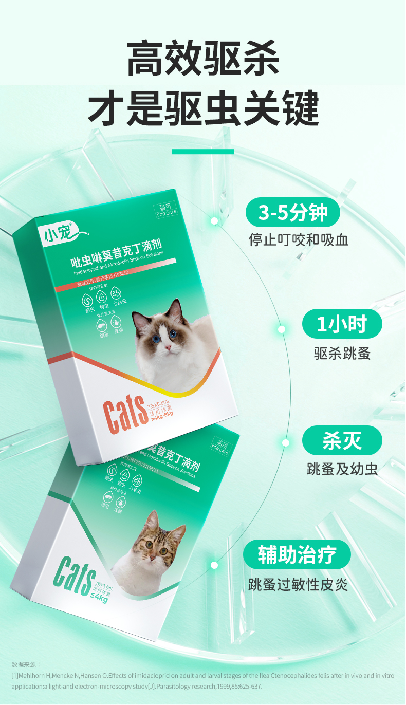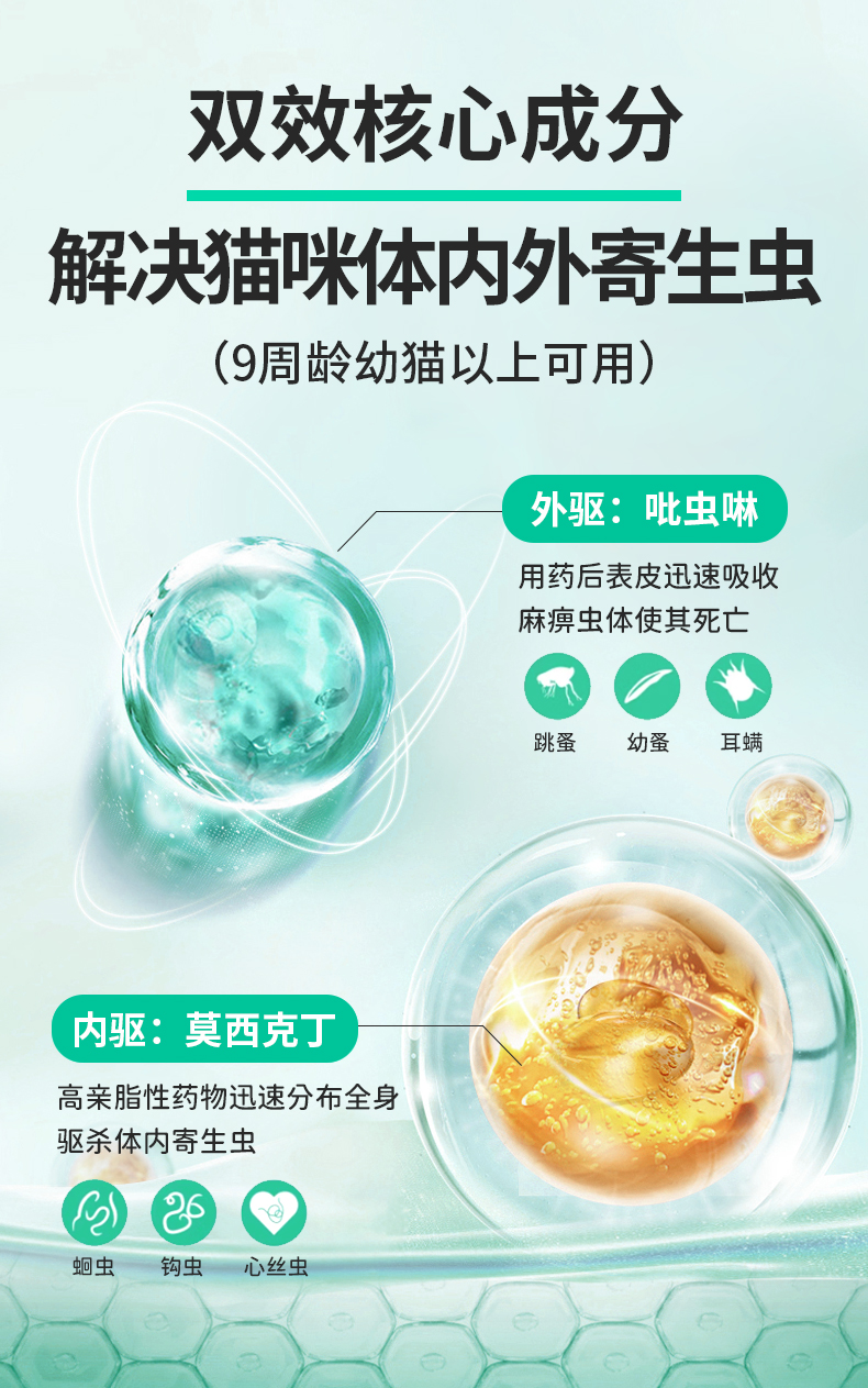 小宠体内外一体同驱 驱虫药 吡虫啉莫昔克丁滴剂 3支装(猫用)