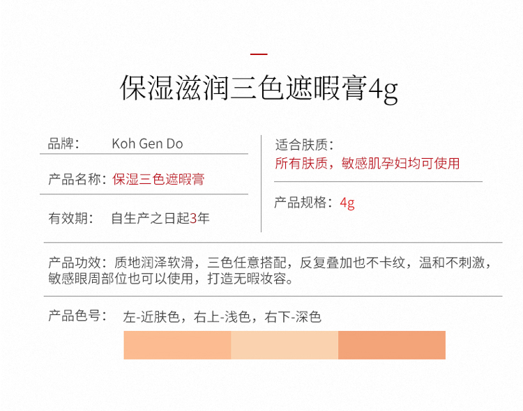 KohGenDo 江原道 保湿滋润三色遮瑕膏 4g