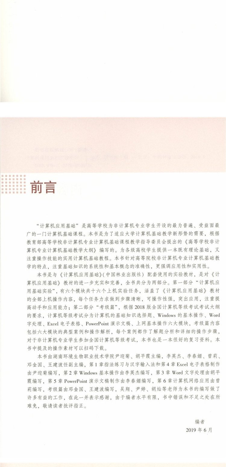 计算机应用基础实验指导 0129 尹迎菊 胡平霞 国家林业和草原局职业教育十三五规划教材 中国林业出版社 畅销书