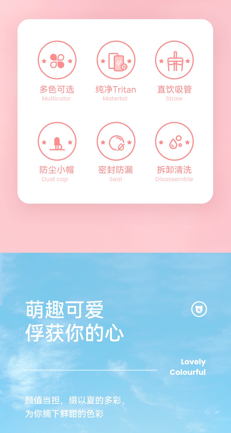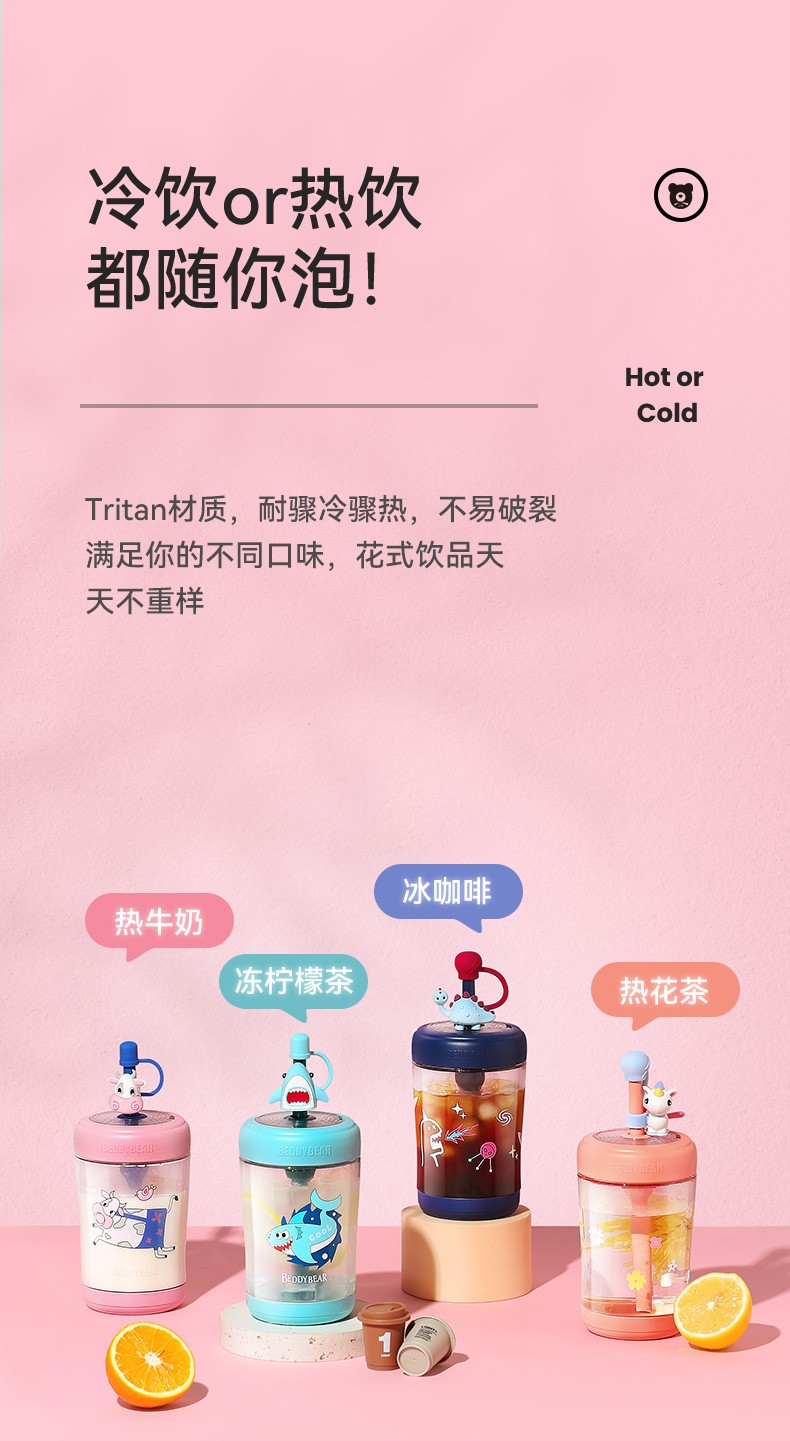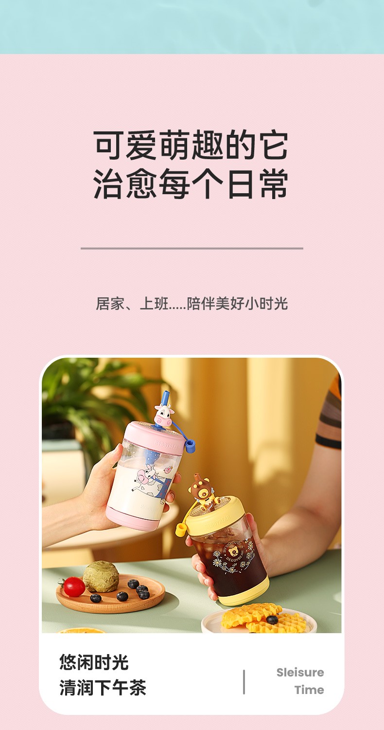 BEDDYBEAR杯具熊 卡通吸管杯冷萃杯水杯 550ml LCB001-550