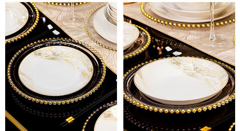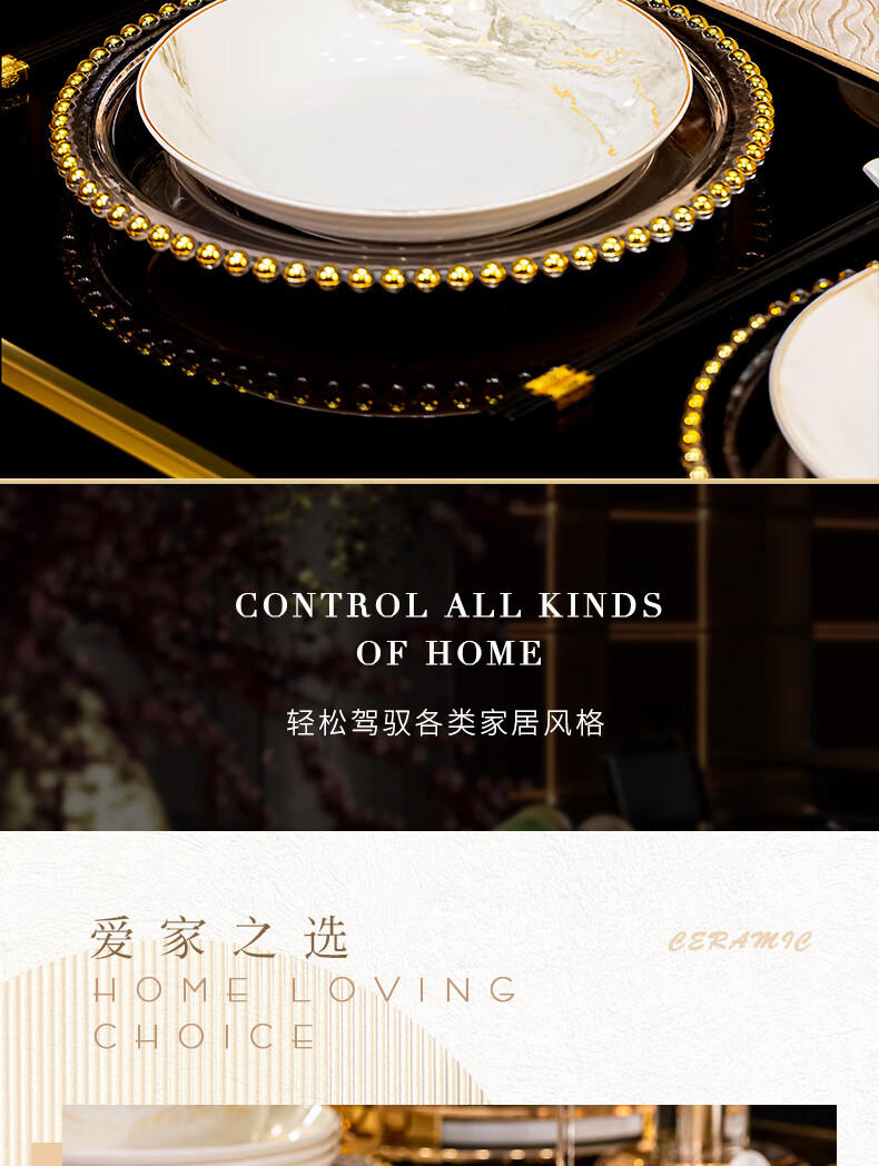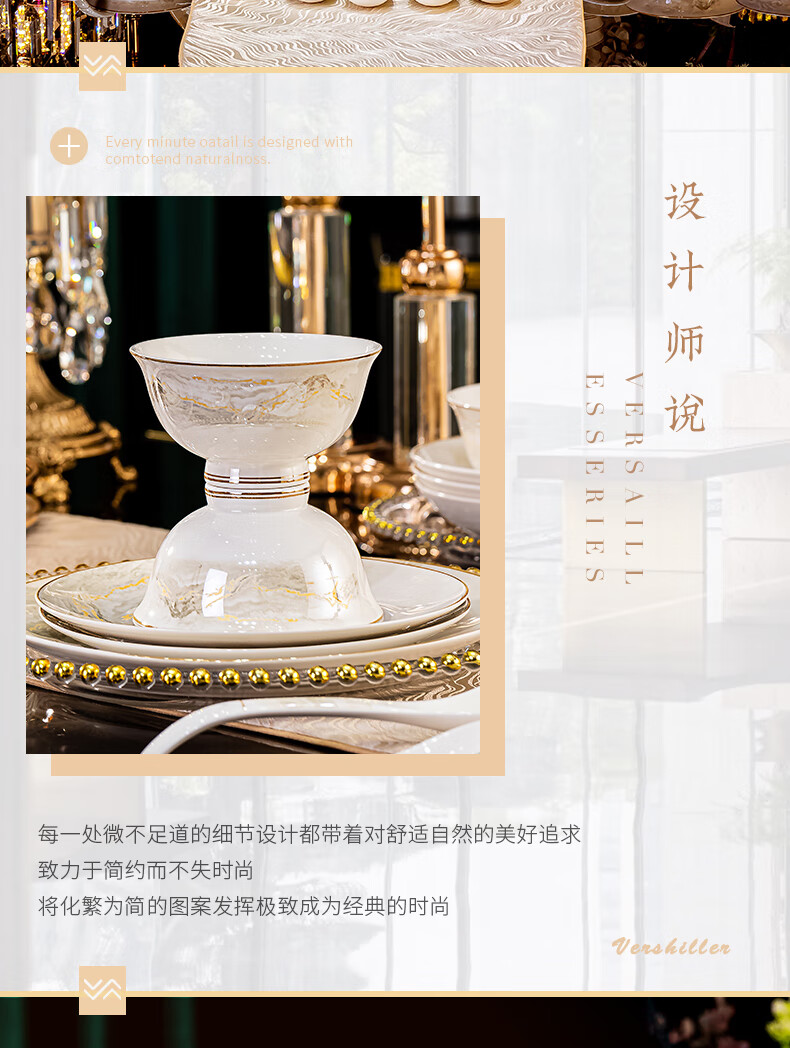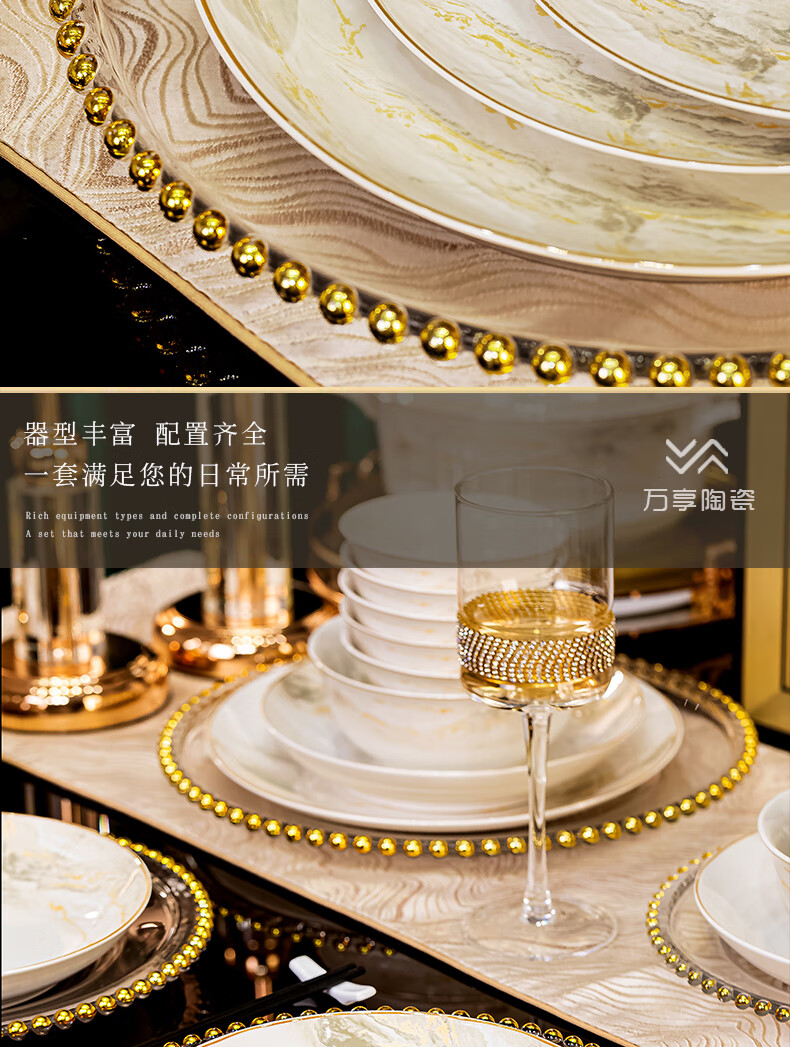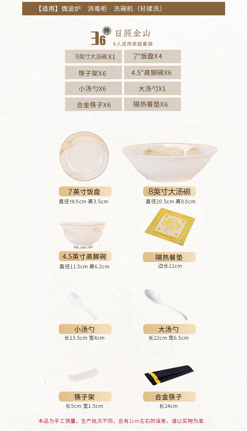 积分免费兑:万享餐具整套碗碟陶瓷套装家用碗筷盘碟子组合日照金山36件套6人食
