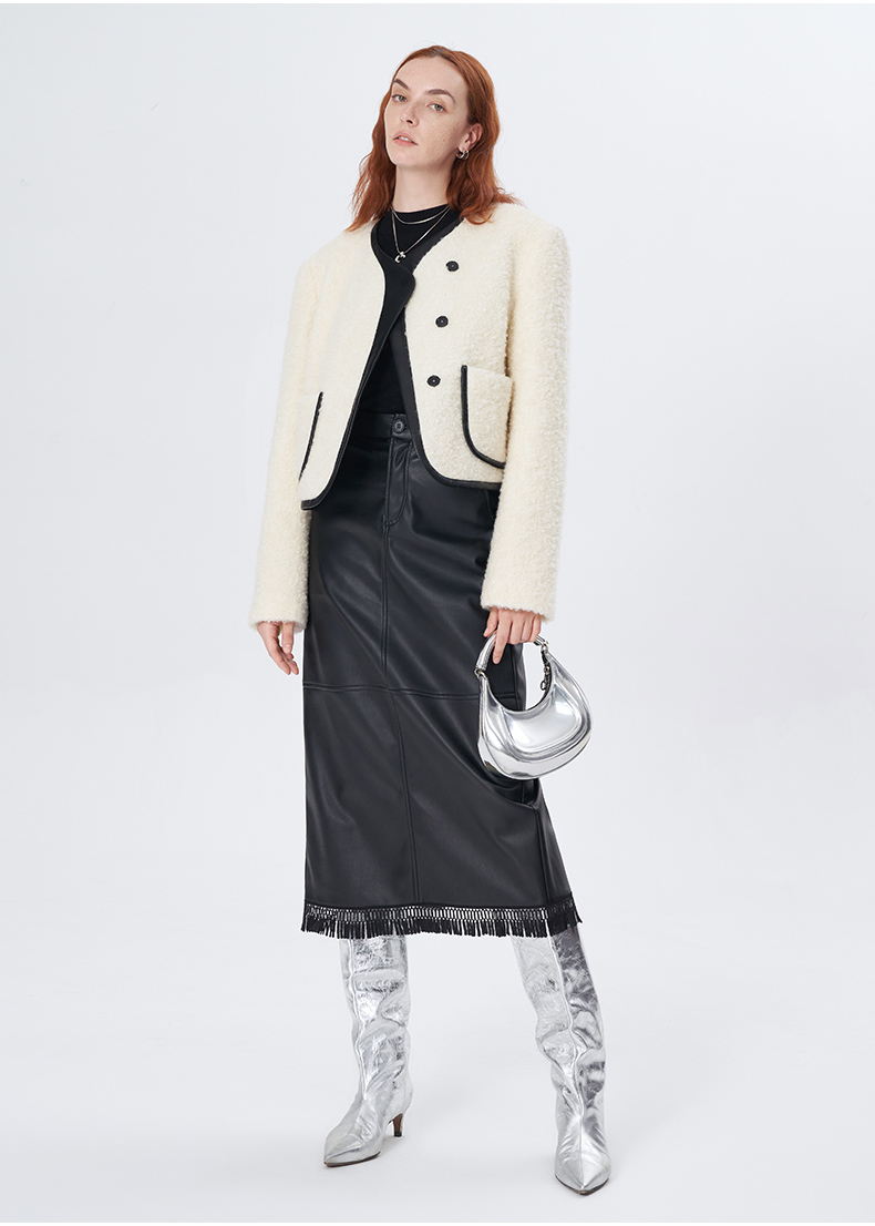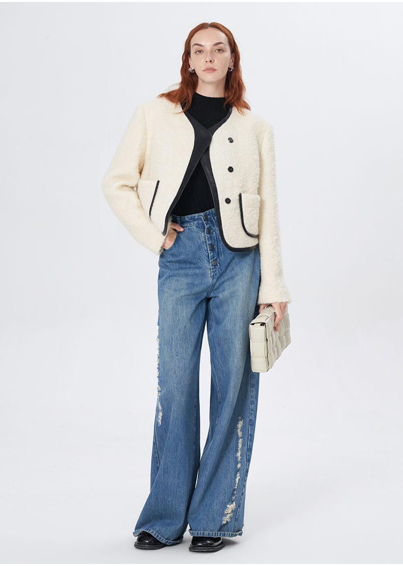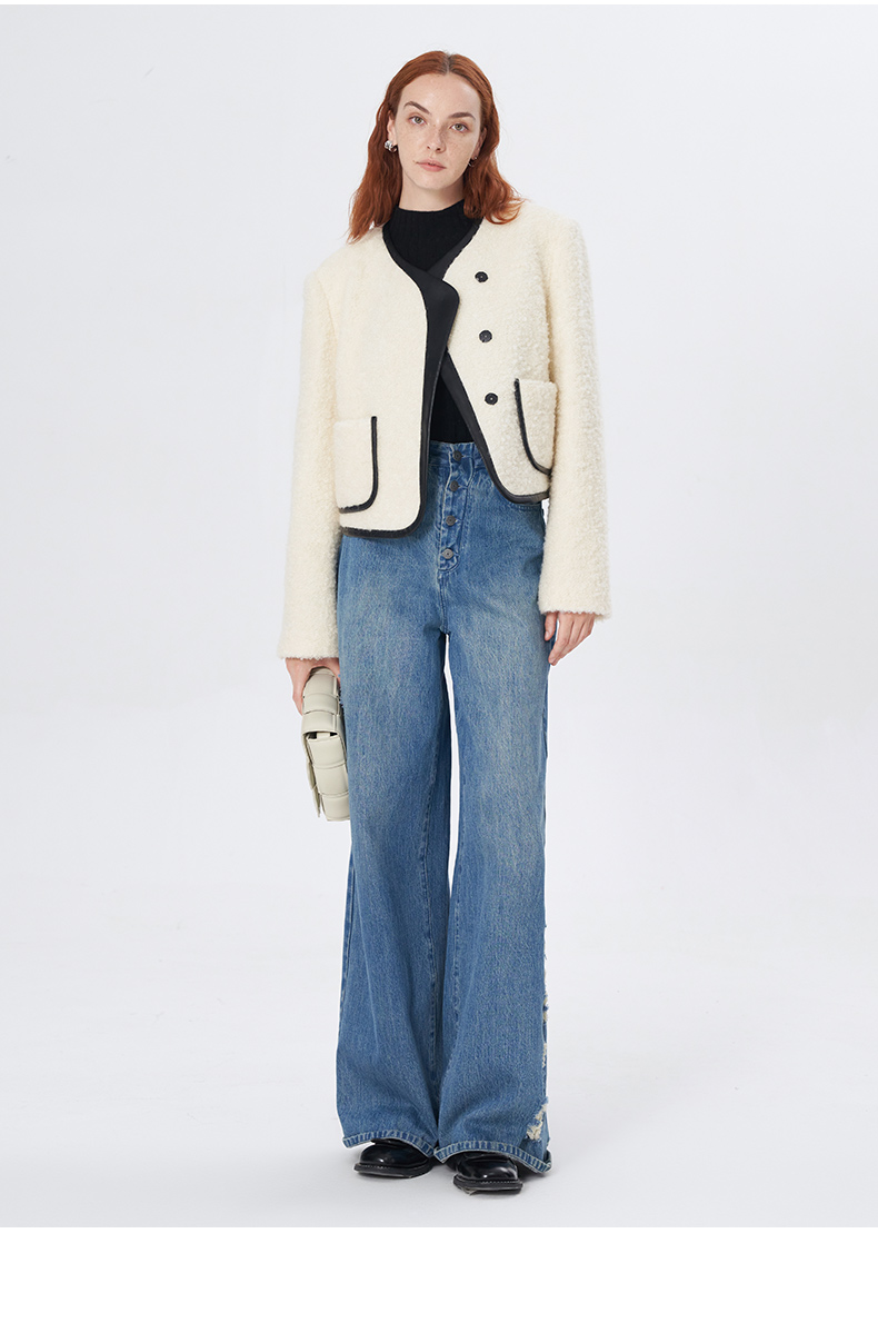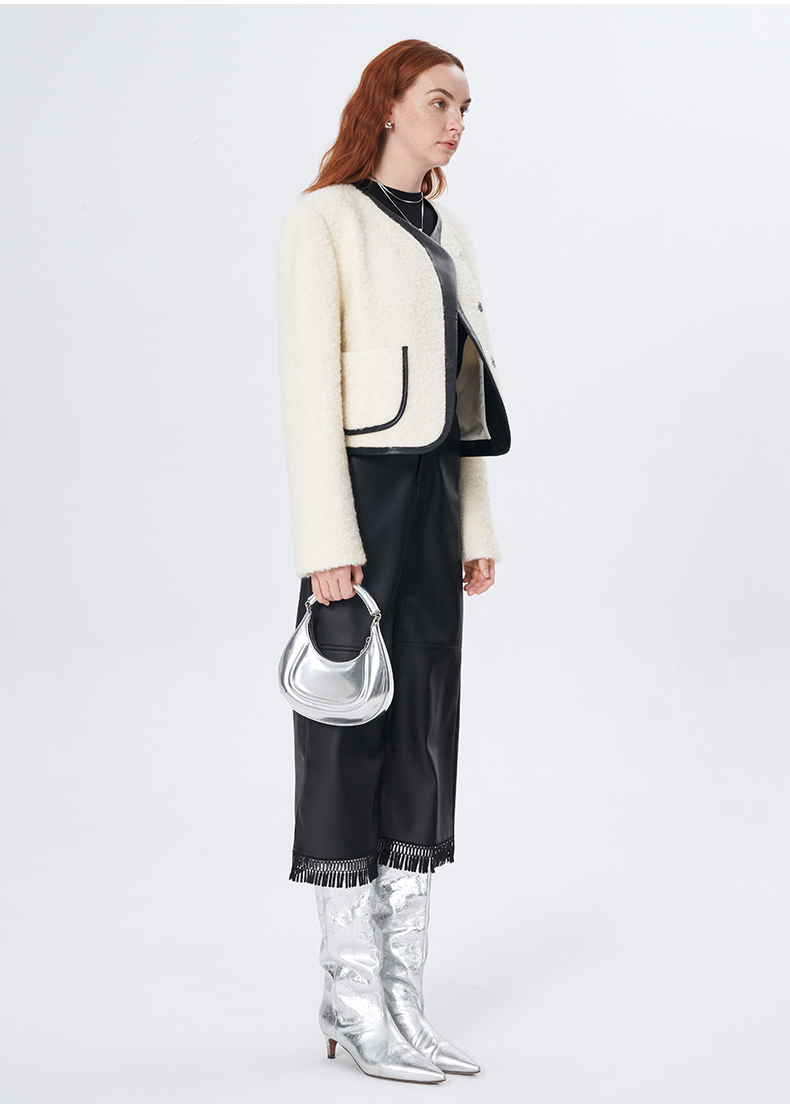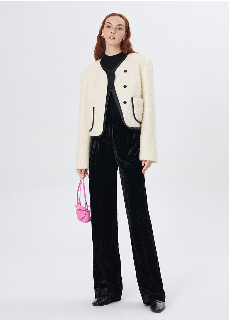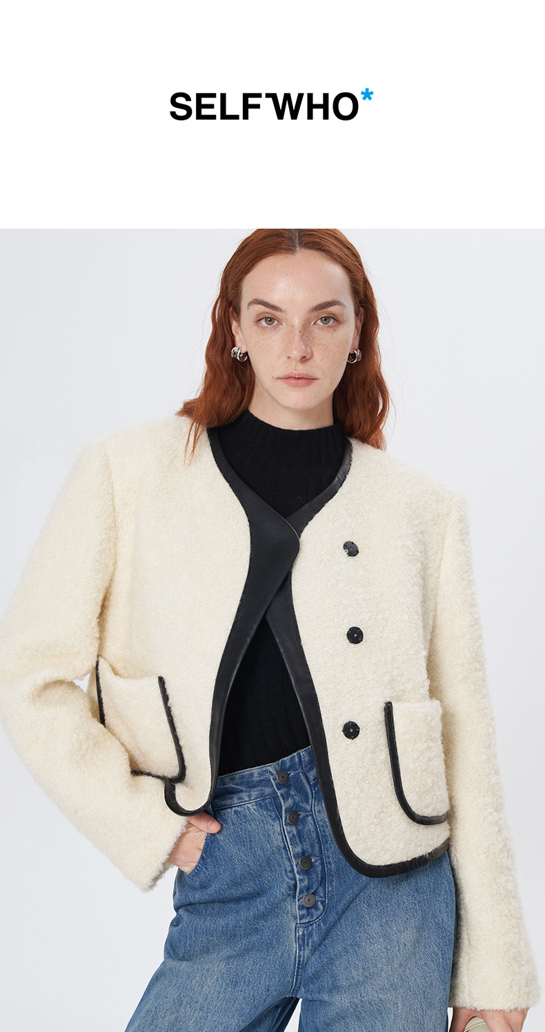 Self Who羊毛混纺圈圈纱短款小香风外套女秋冬2023新款气质名媛风