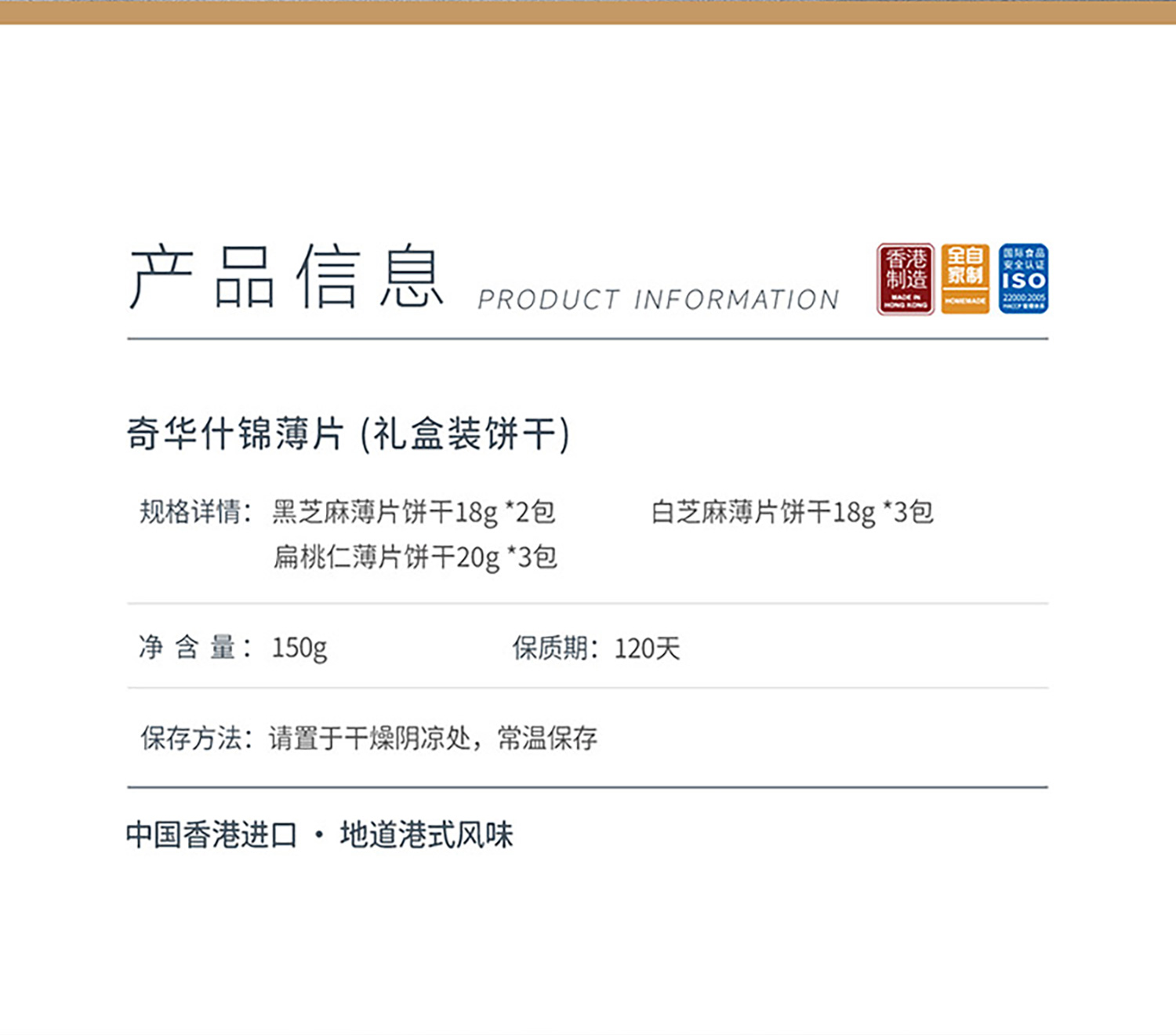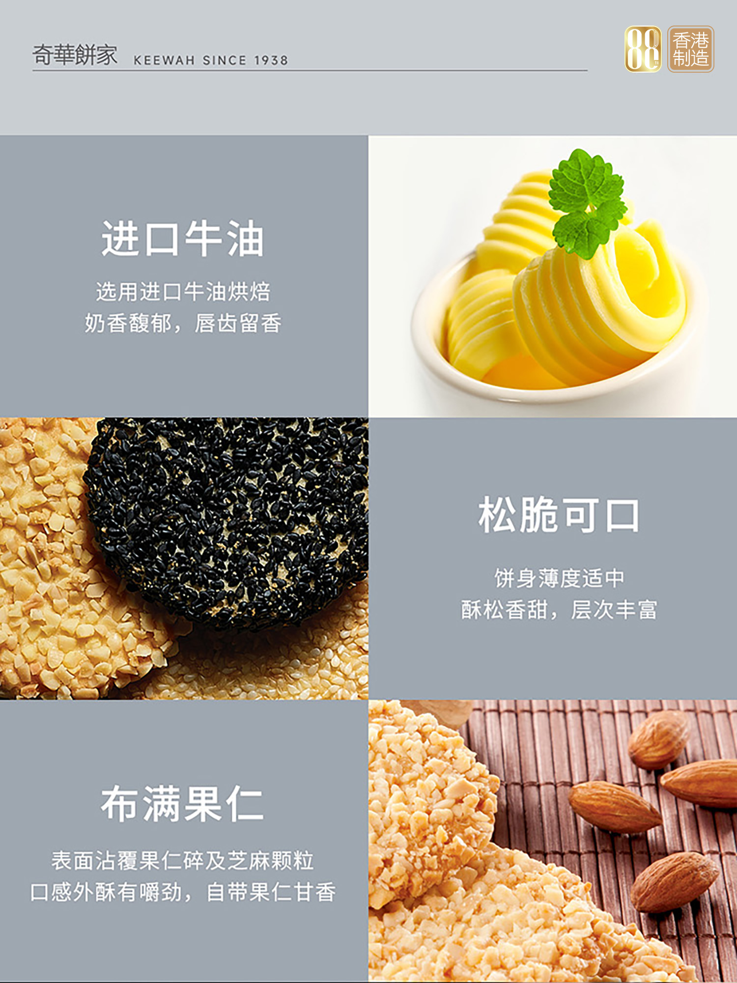 【什锦薄片礼盒】奇华饼家扁桃仁黑芝麻薄片什锦饼干礼盒中国香港进口饼干节日送礼