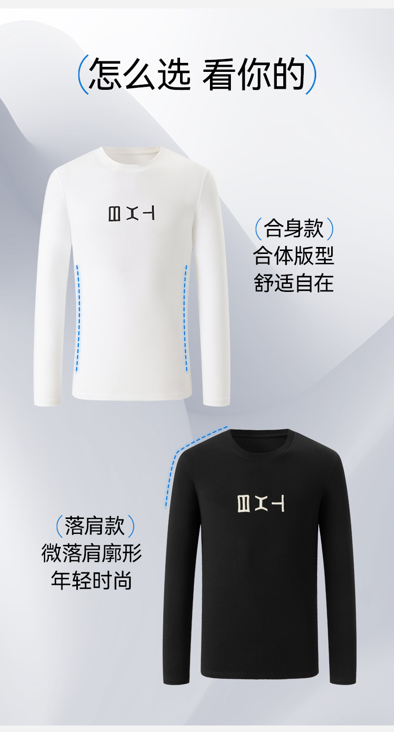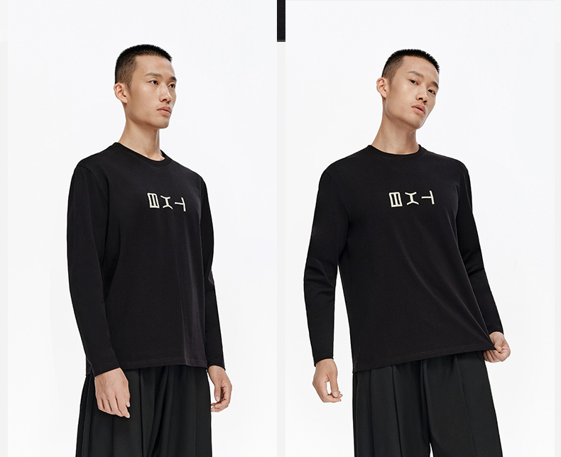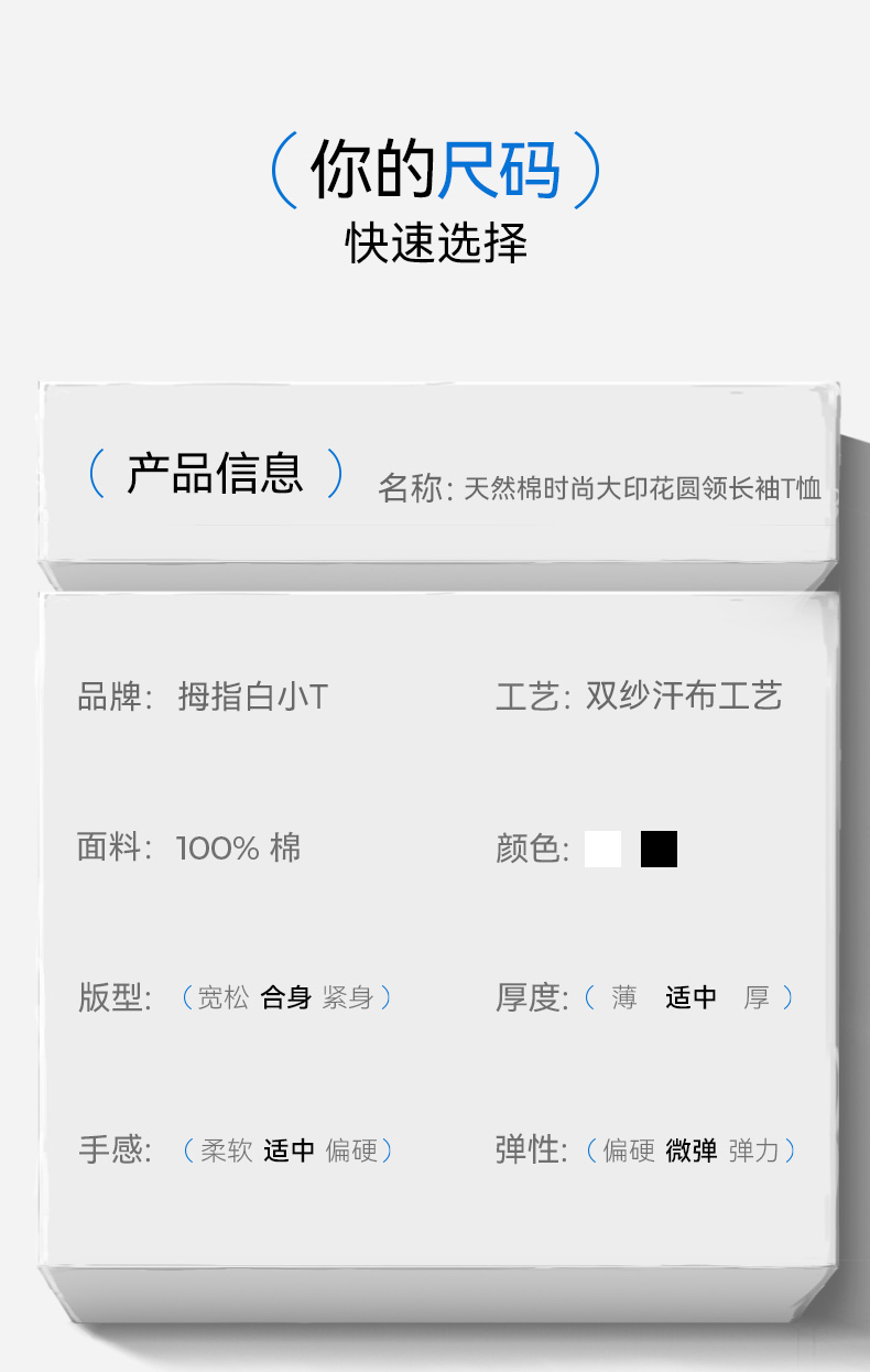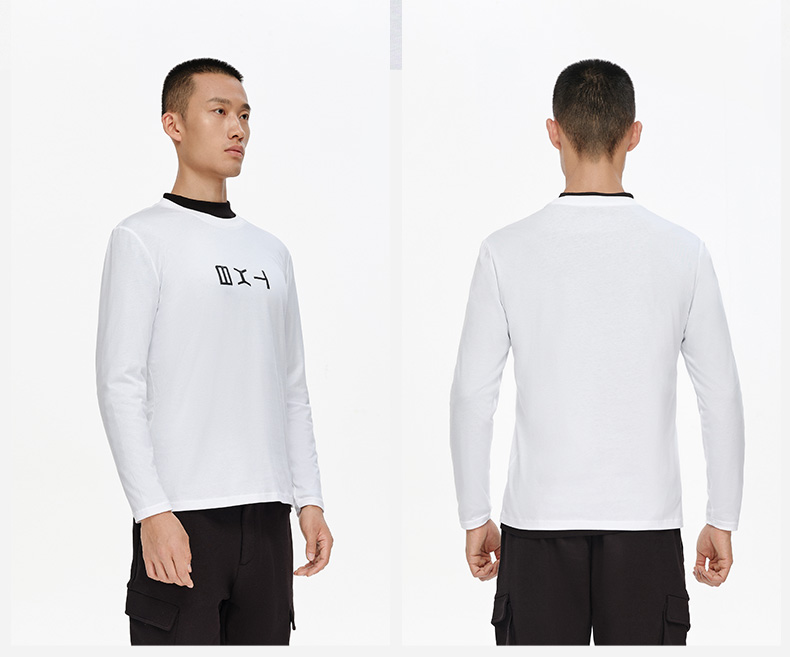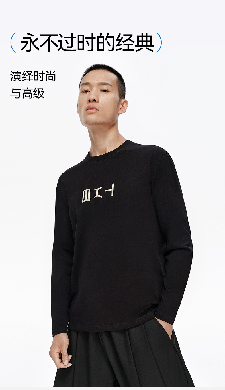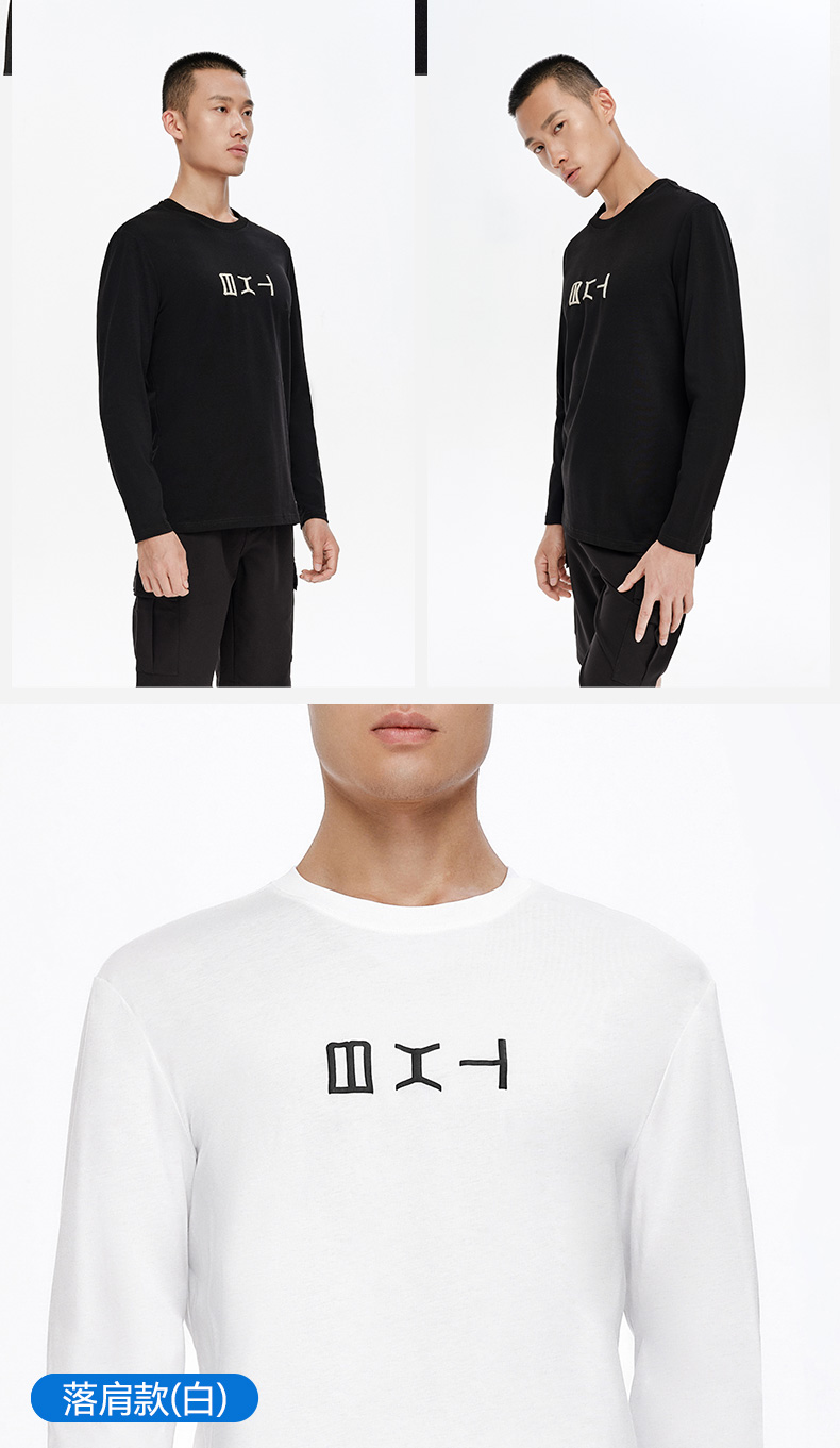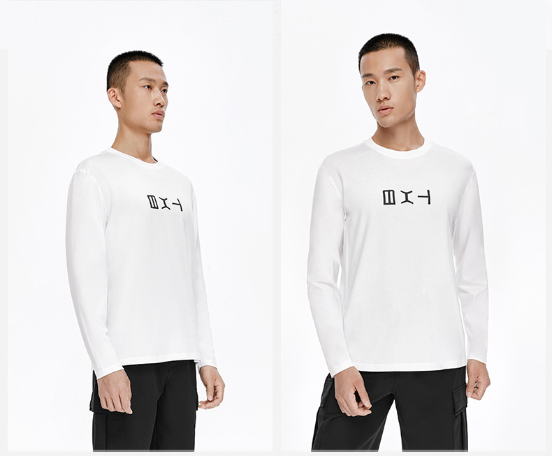 拇指白小T天然棉时尚大印花圆领长袖T恤至简舒感系列