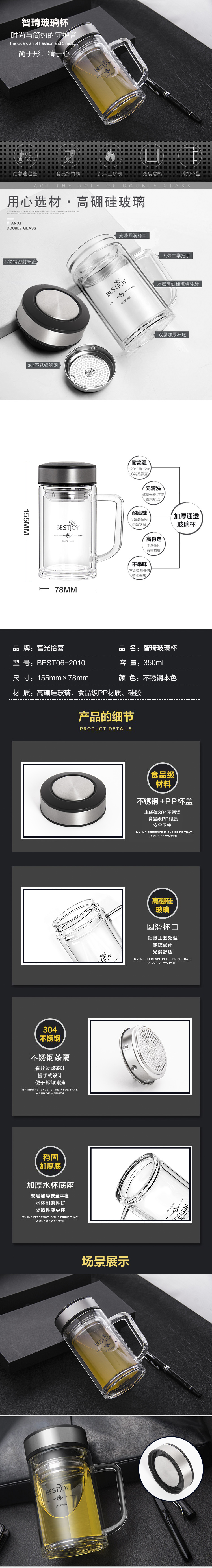 富光拾喜 高硼硅双层办公杯 家用办公茶水杯 350ml BEST06-2010