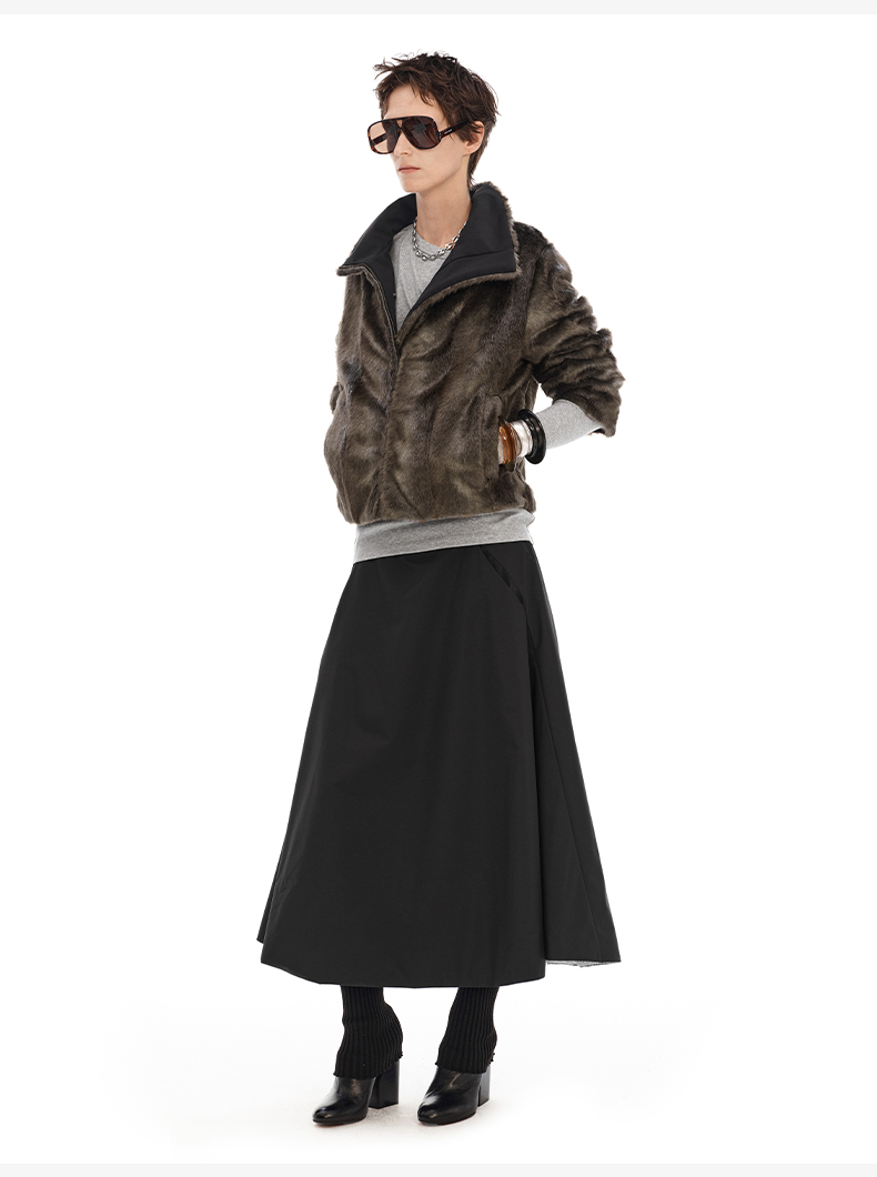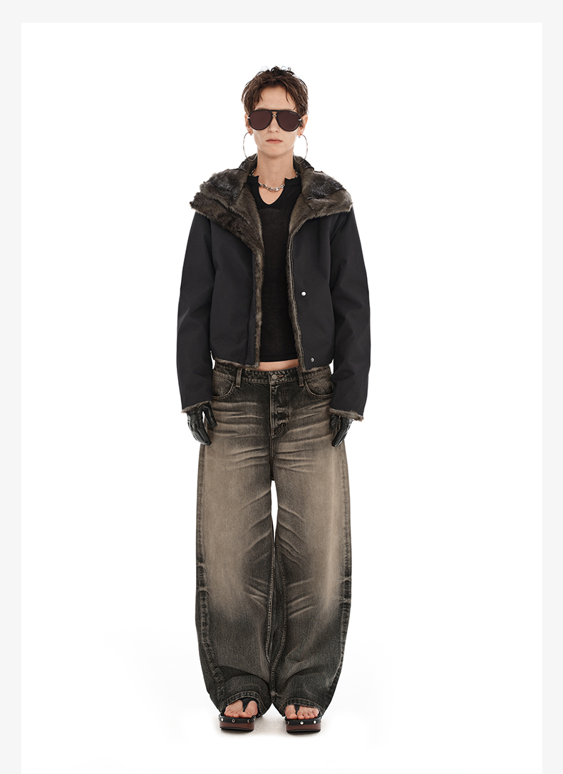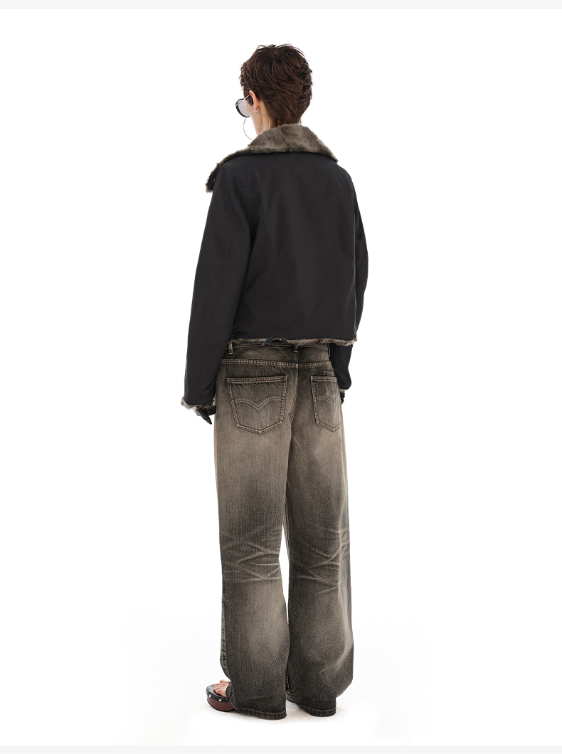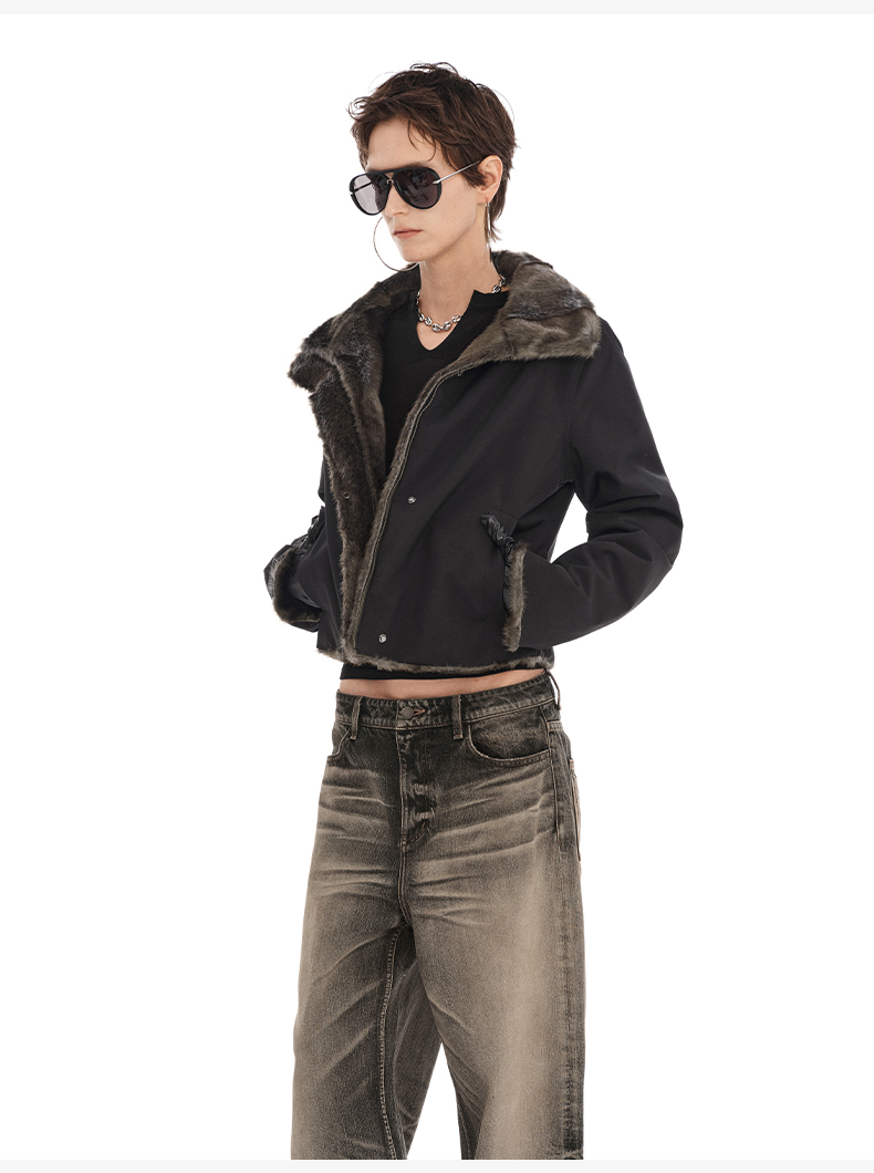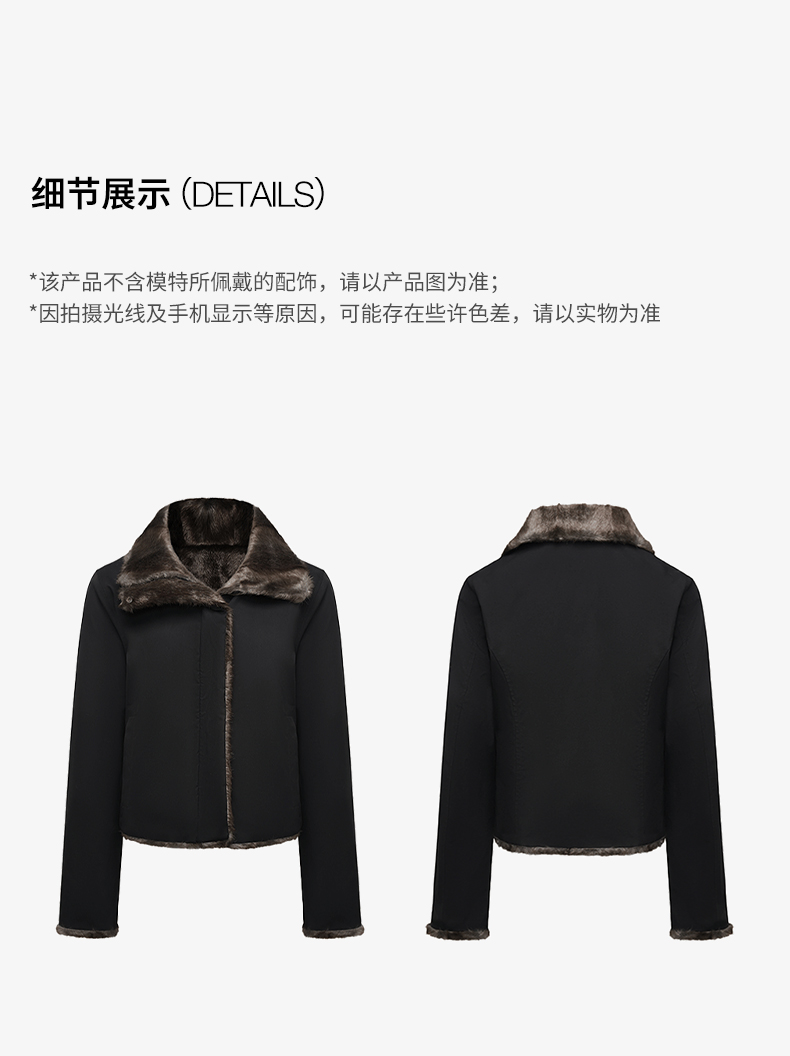 NUTH正反两穿短外套修身显瘦复古黑色保暖厚短外套女(发货时间同步天猫)
