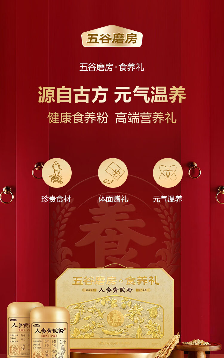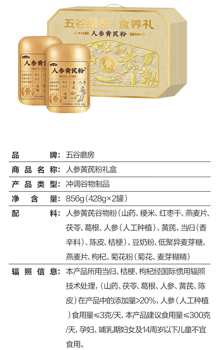 五谷磨房雅致礼-人参黄芪粉(428g×2罐)
