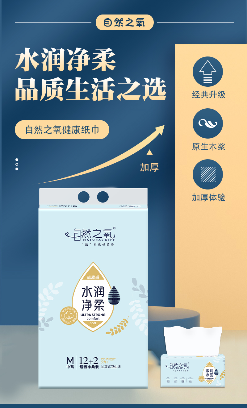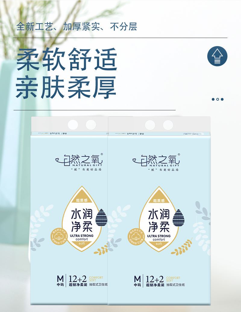 自然之氧抽纸纸巾水润净柔原生木浆 380张/包 14包/提