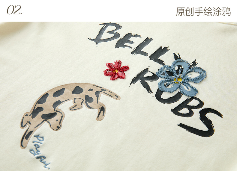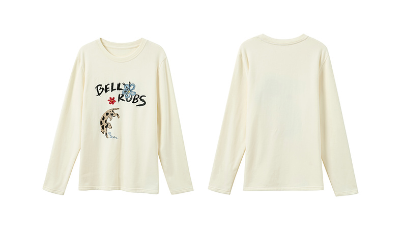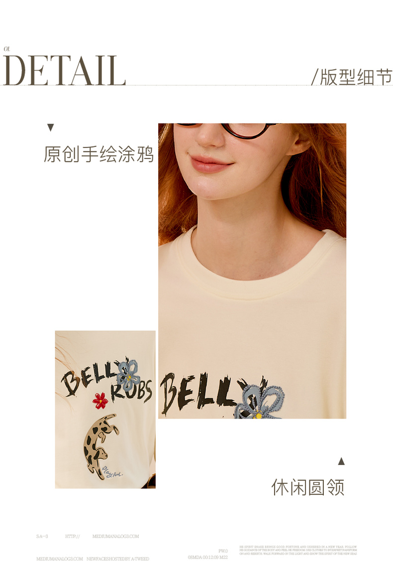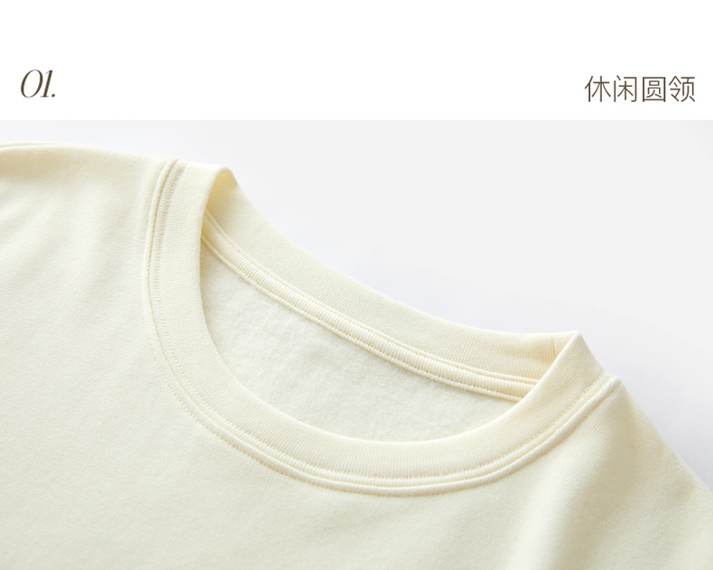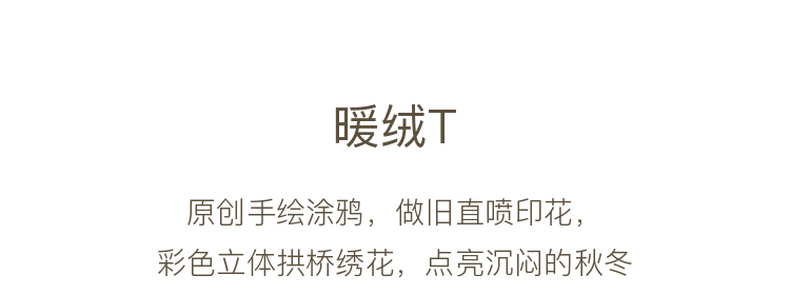 三彩2025冬季新款抓绒字母印花T恤圆领长袖上衣套头衫宽松复古M