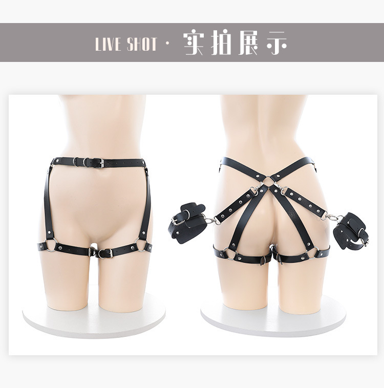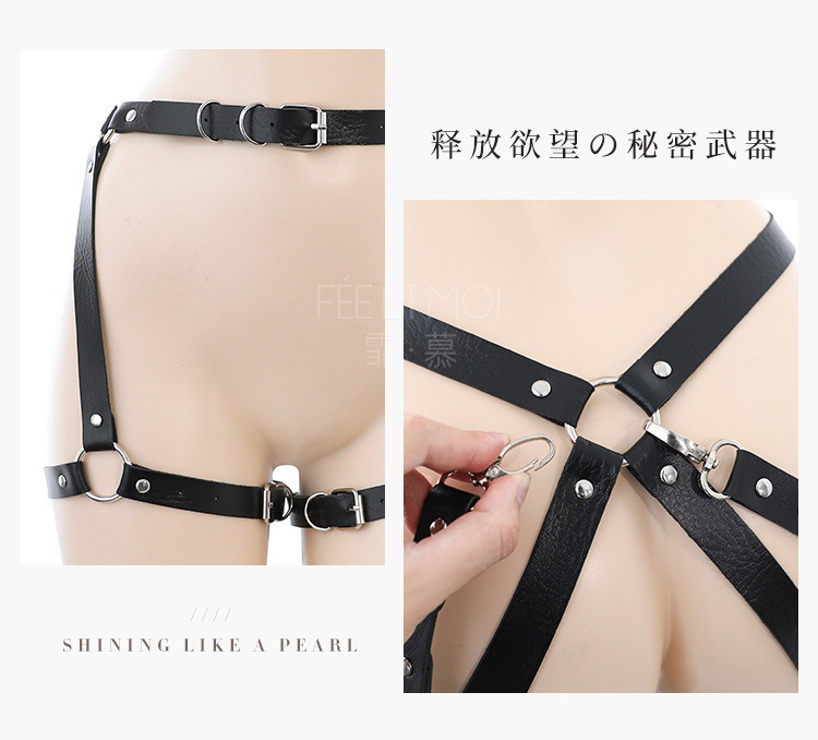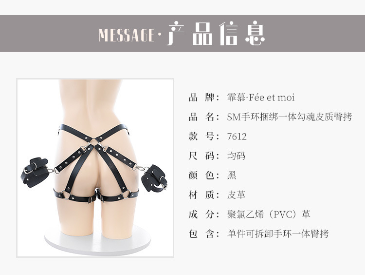 【霏慕】sm手环捆绑一体勾魂皮质臀拷7612情趣内衣调情用品套装