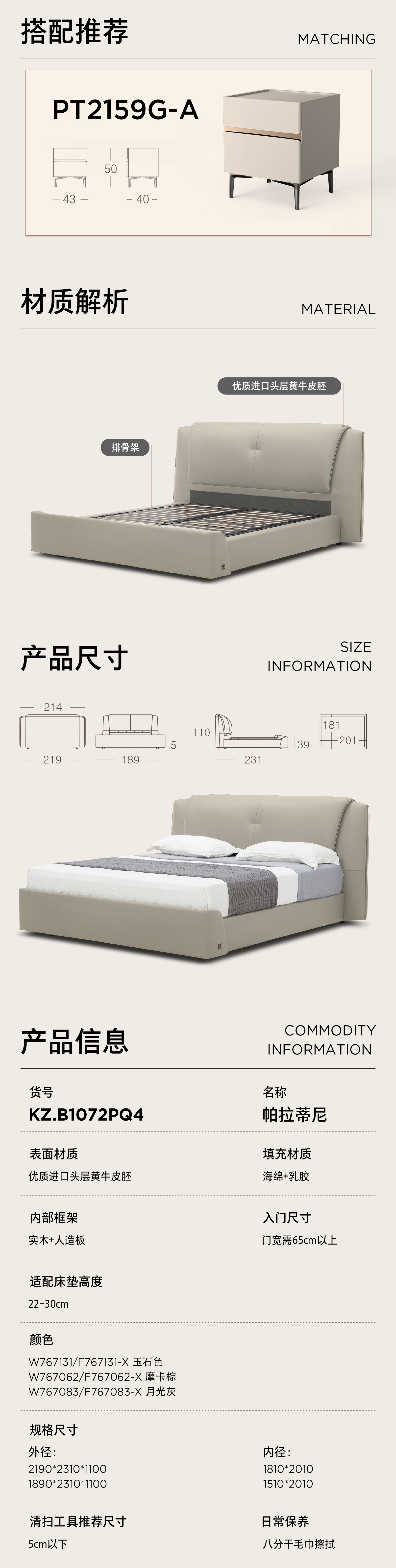 顾家家居整装 意式轻奢 皮艺软床KZ.B1072PQ4-帕拉蒂尼