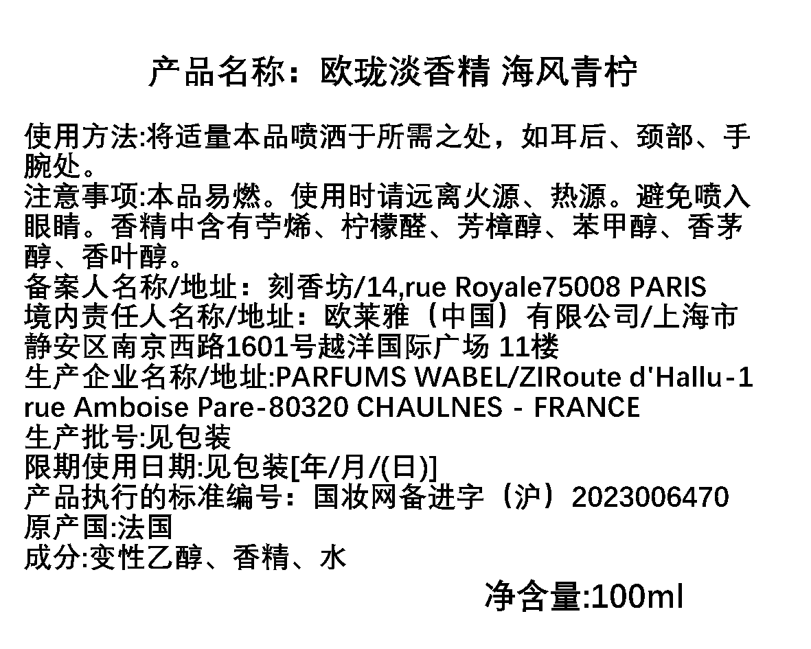 Atelier Cologne欧珑 Pacific Lime/海风青柠香水