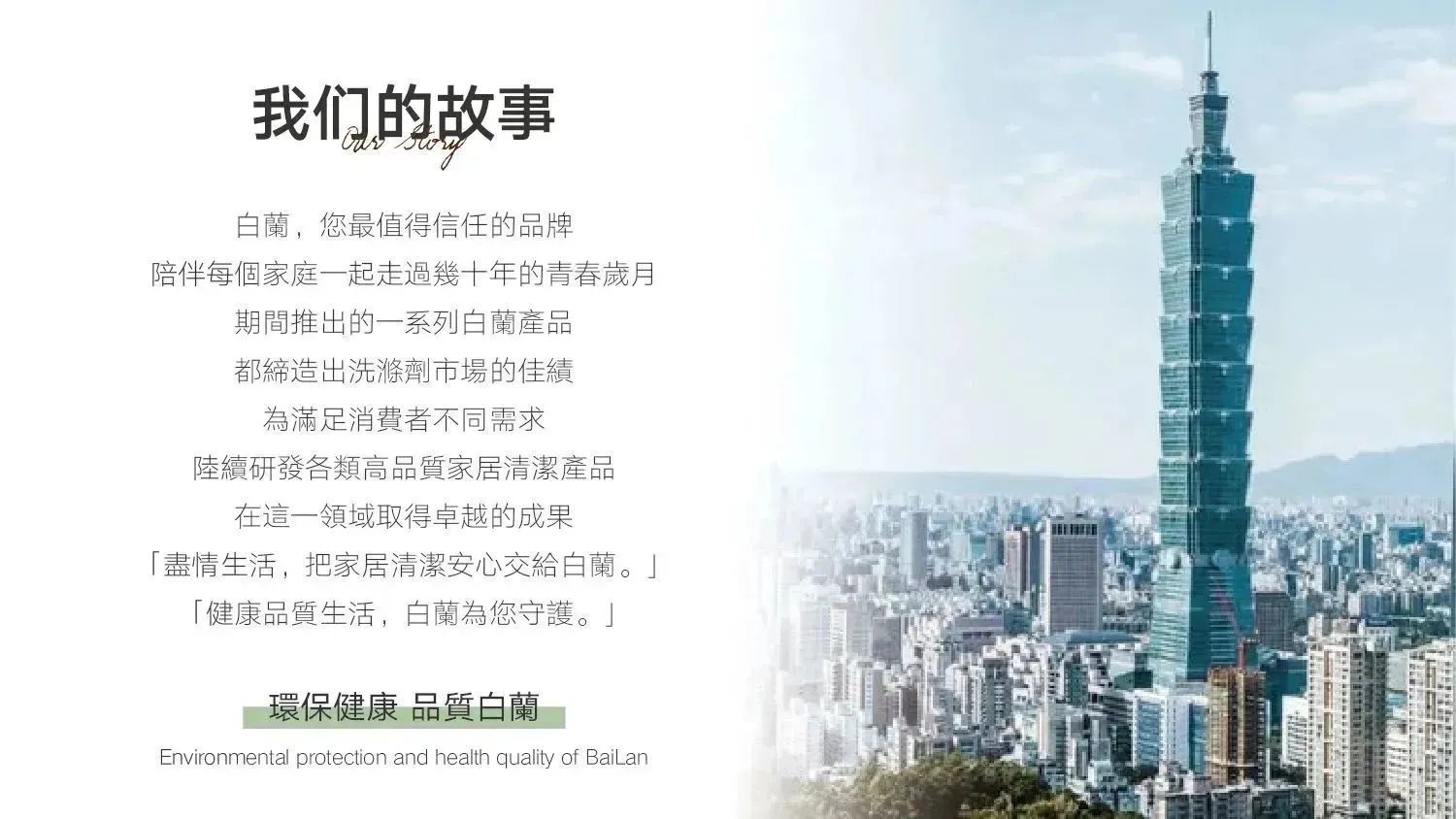 白蘭这个品牌在台湾早已家喻户晓,是台湾的国民品牌 陪伴了台湾每个家庭50多年 是台湾洗涤行业的领导者 秉承源于自然,安全放心的理念!