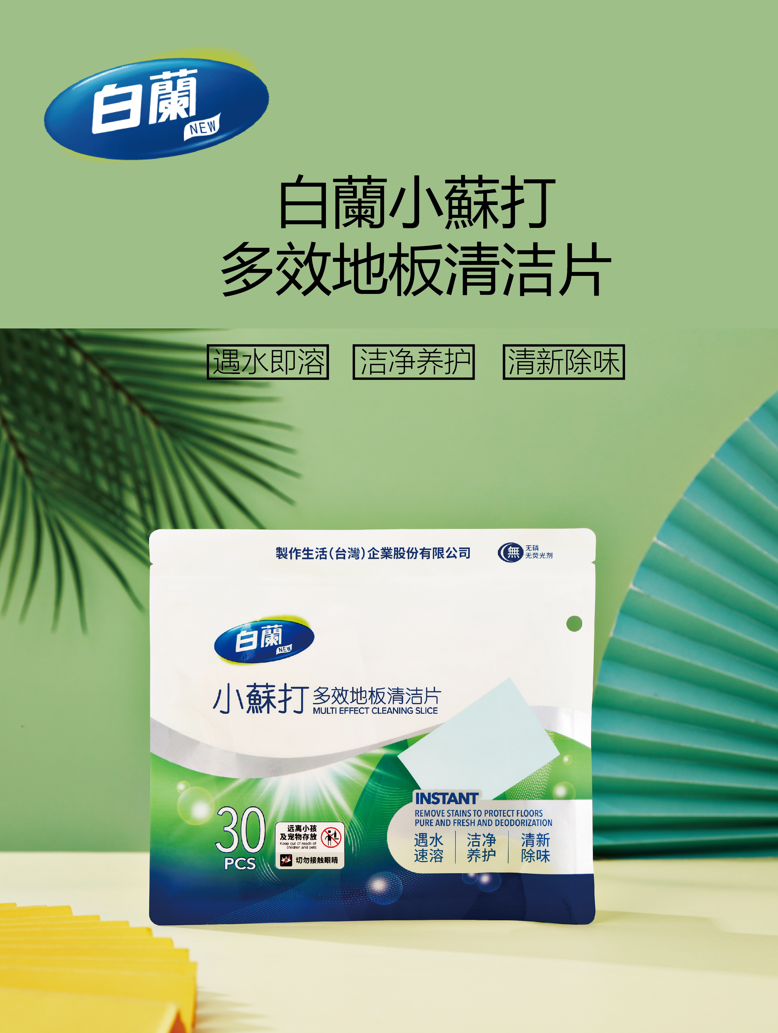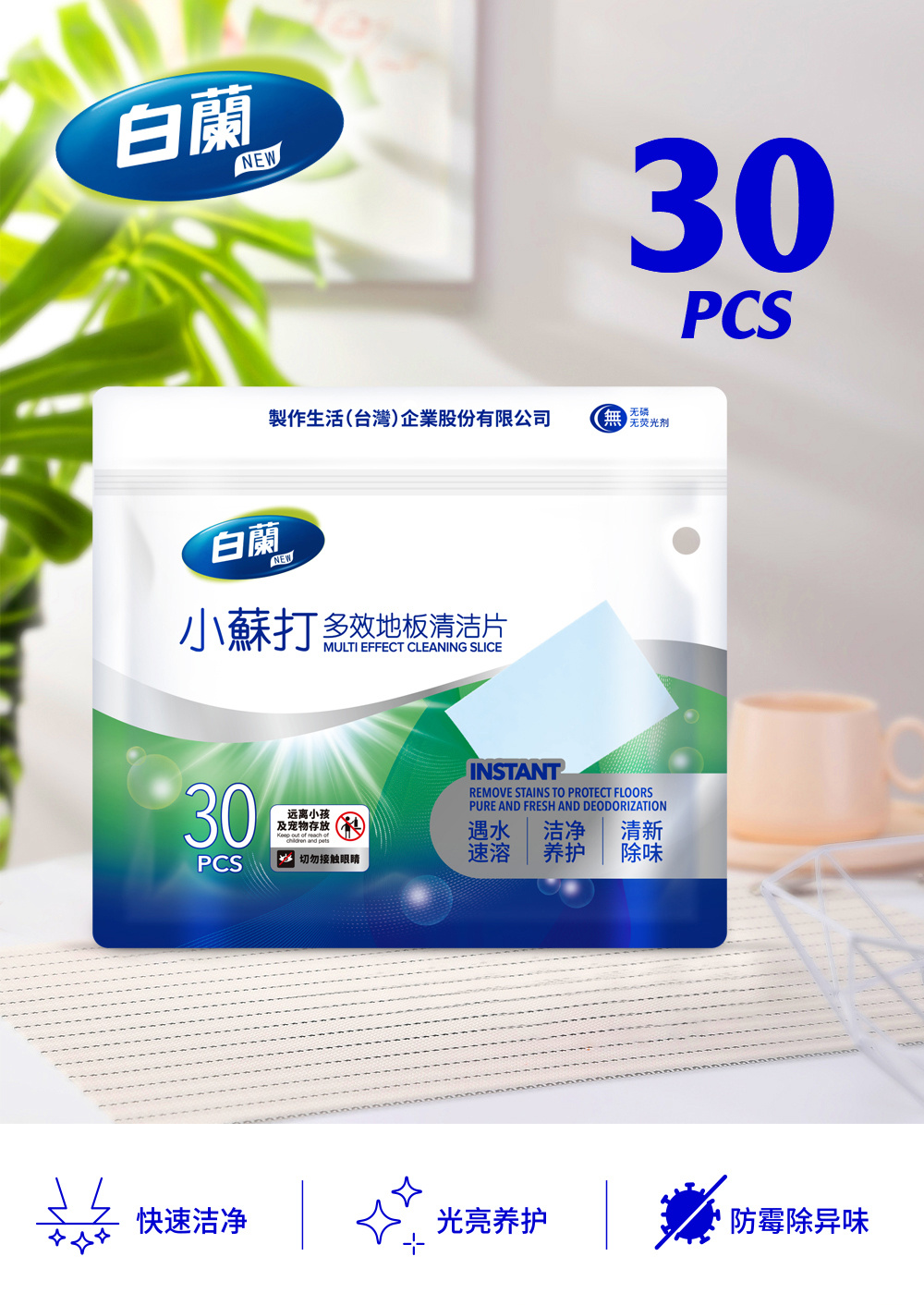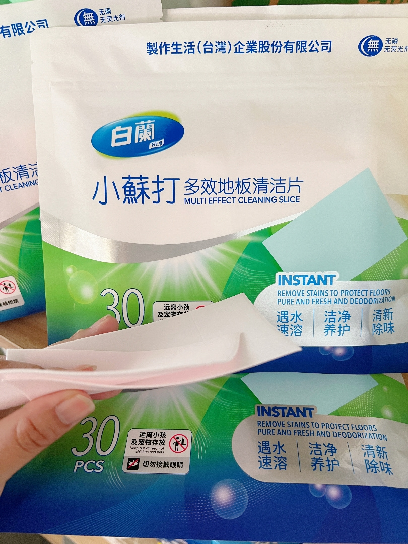【白蘭小苏打多效地板清洁片】冷热水均可快速溶解,易漂无残留❗ ✔固态浓缩,小苏打洁净配方,一次一片,方便易携 ✔瓷砖、木地板、浴室洁具