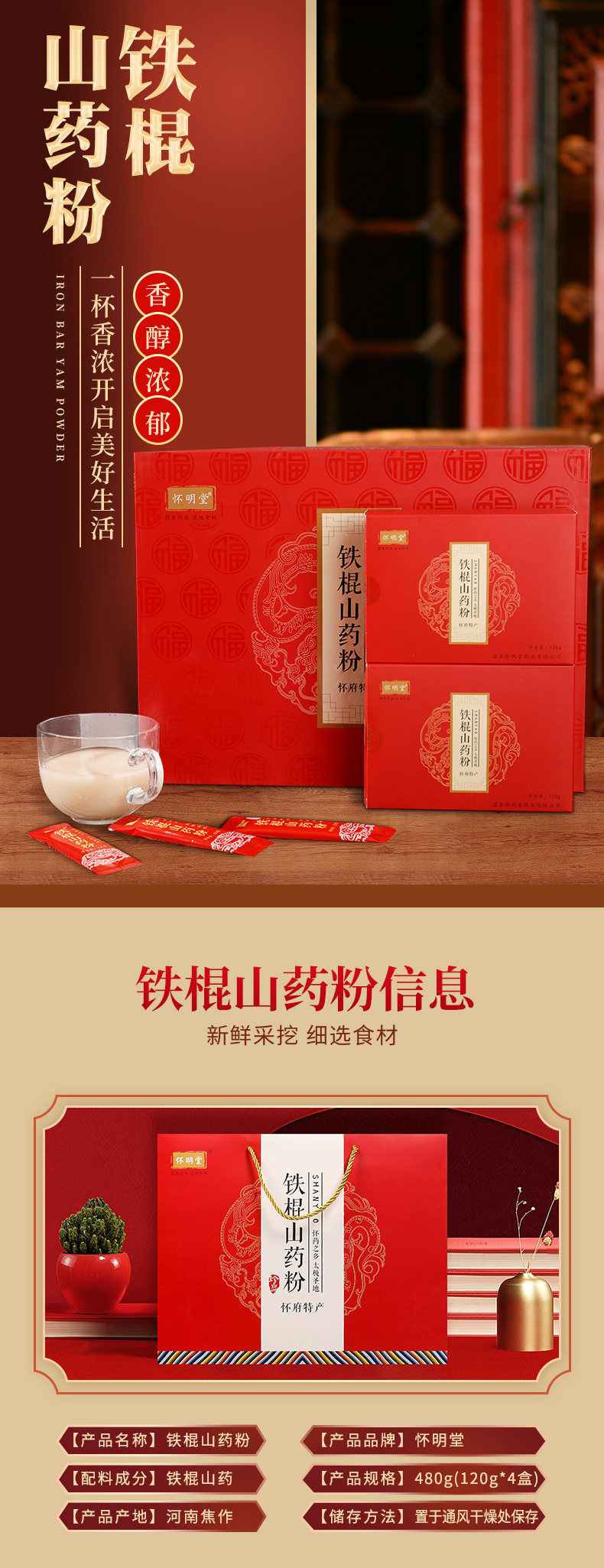 【怀明堂】怀明堂铁棍山药粉礼盒480g 河南焦作温县山药熟粉